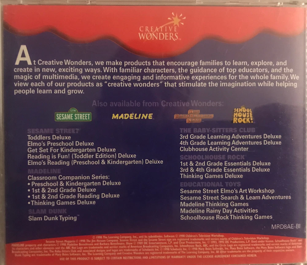 the cd is in like new condition and includes a brand new jewel case. The Learning Company Madeline Rainy Day Activities for PC, Mac Computers/Tablets & Networking > Software > Web & Desktop Publishing Product Information Join Madeline as you explore all the fun and enriching activities you can do together on a rainy day. Build important creative, memory, and thinking skills as you play over 100 activities. Playing and learning with Madeline has never been so much fun! Product Identifiers Brand The Learning Company MPN MRD3844AE Model Madeline Rainy Day Activities eBay Product ID (ePID) 128002316 Product Key Features Format CD License Category Standard For Operating Systems Windows, Microsoft Windows 3.x, Mac, Apple Mac OS 9 Additional Product Features Type Education, Language, Référence License Quantity 1 User/S Package Quantity 1 Product License Version Full Version Operating System Microsoft Windows 3.X, Apple Mac OS 9 Package Type Retail