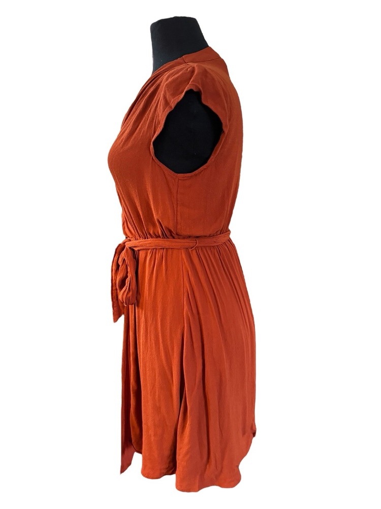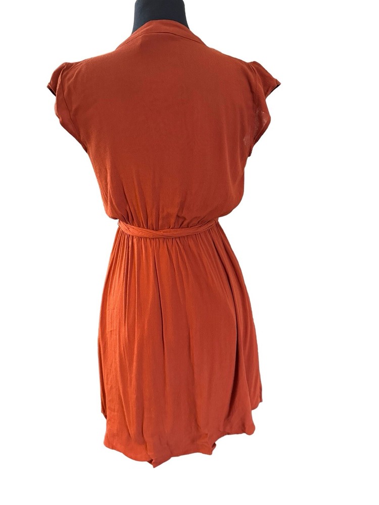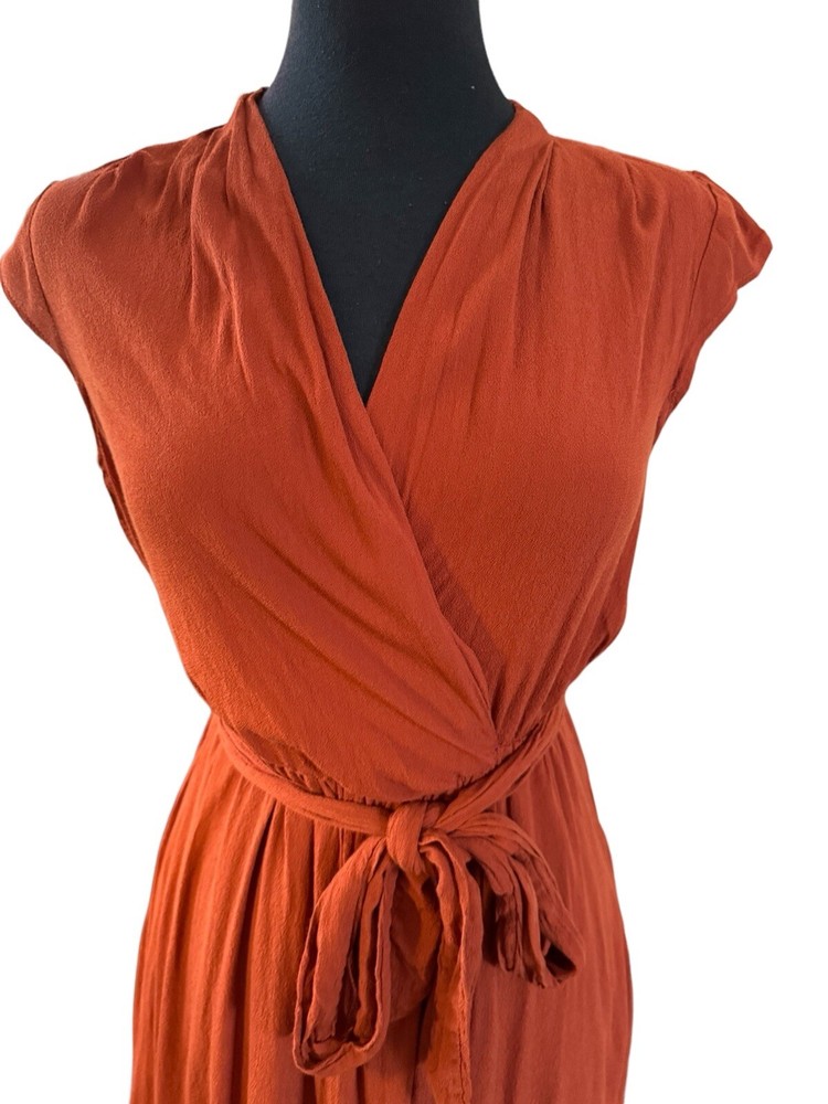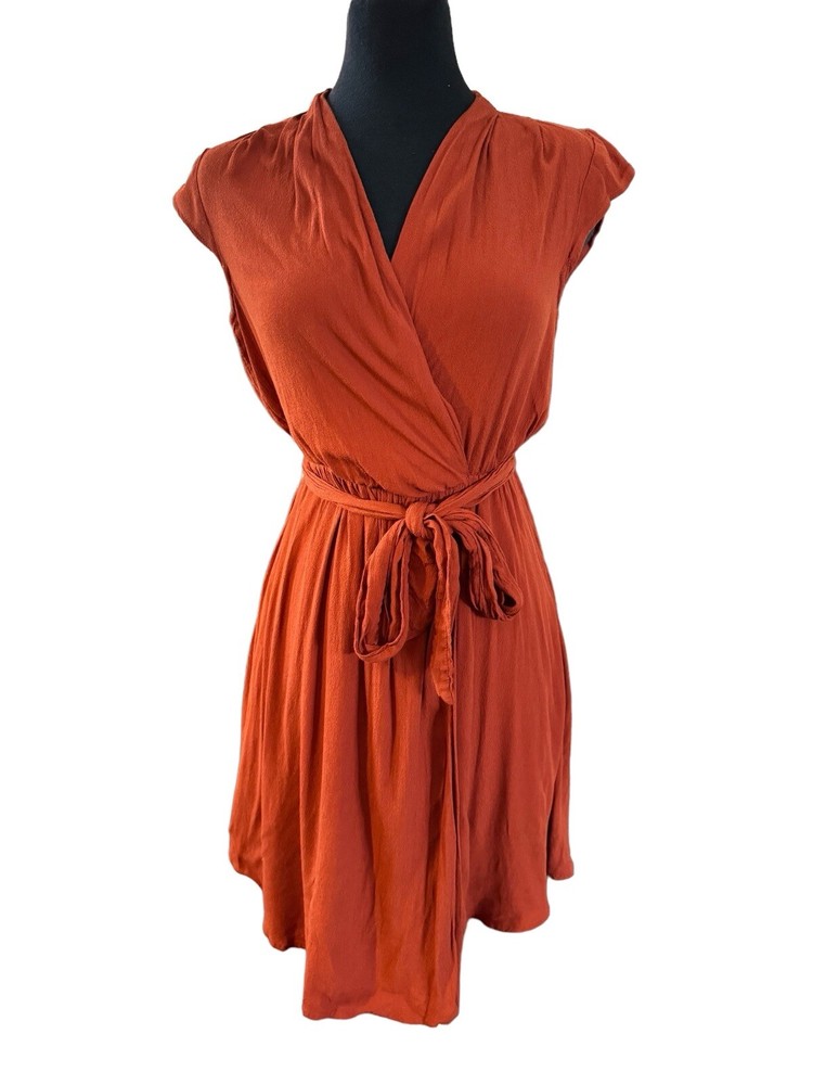 This beautiful Maeve dress is perfect for any occasion. The burnt orange color and wrap style design make it both stylish and versatile. It's made with high-quality rayon and viscose materials, ensuring comfort and durability. The knee-length dress comes with a belted feature, which adds a touch of elegance to the already gorgeous dress. The solid pattern and XS size make it ideal for women who want to look their best. Upgrade your wardrobe with this stunning Maeve dress today!