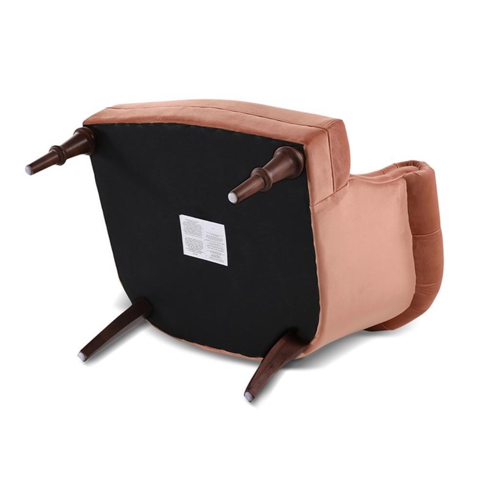 Upholstered with premium high-quality fabric and high-density foam padding, the solid wood frame made of kiln-dried birch and 11-layer plywood provides exceptional support and stability that will last for years to come. The unique rolled arm design and ample diamond button tufting creates a luxurious look and gives it its own personal charm making it an ideal choice for the bedroom, living room, or other living areas in need of lounging comfort. Maklaine offers a unique versatility in design and makes use of a variety of trend inspired color palettes and textures. Our products bring new life to the classic American home. Features: Bench-made home furnishing products carefully hand built by experienced craftsmen and women A sturdy frame of kiln-dried solid hardwood and 11-layer plywood Upholstered in high-quality woven fabric atop premium high-density flame-retardant foam High-strength sinuous spring suspension for long lasting comfort and support Strength and support that will last A luxurious medium firm feel Specifications: Upholstery Color: Orange Product Dimensions: 30.5"L X 30.5"W X 30"H Weight Capacity: 300 lbs Arm Height: 30" Assembly Required: Yes Seat Height: 18" Product Weight: 31 lbs Seat Depth: 20" Seat Width: 19.5" Upholstery Material: Velvet Recommended Location: Indoor Recommended Room: Living Room