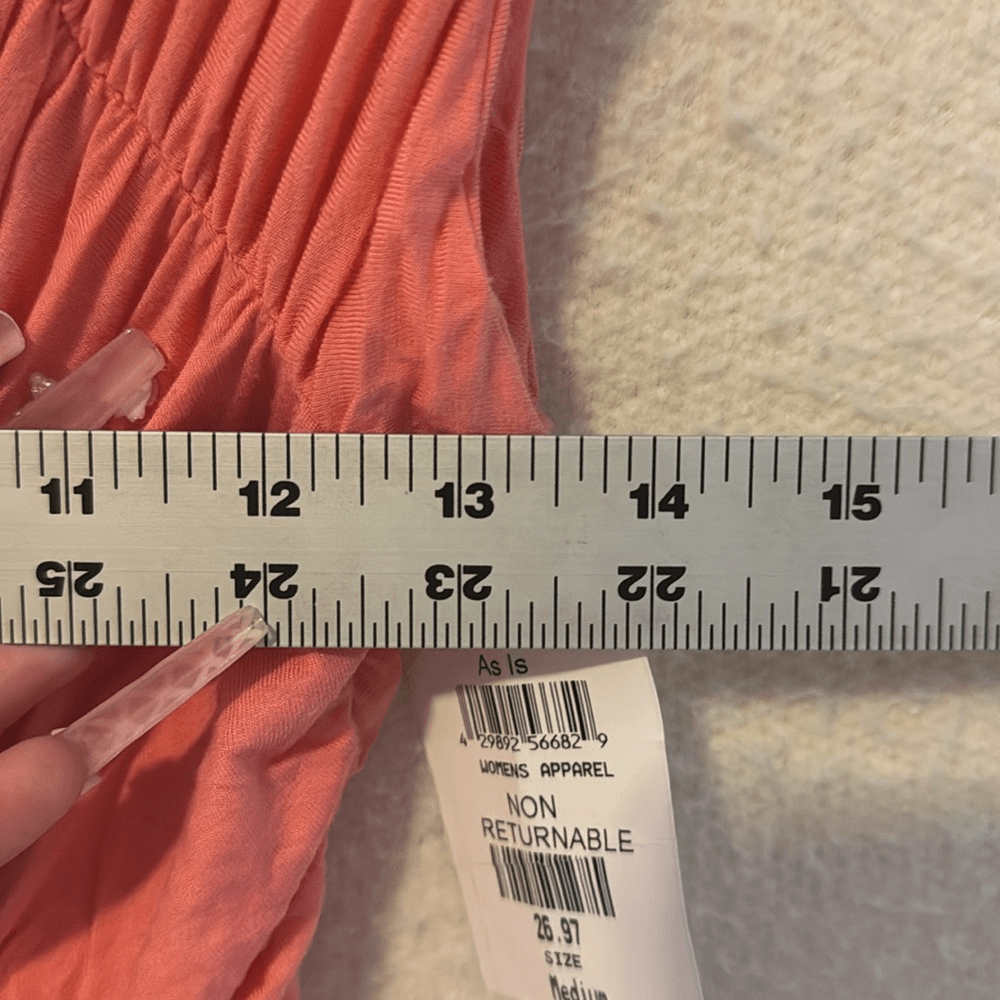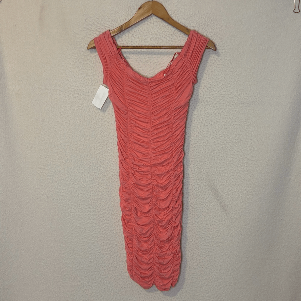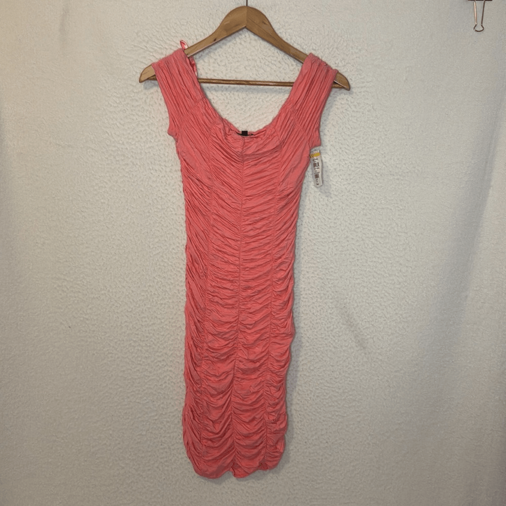 Wow, this dress is a total find! The peach color is so vibrant and the ruched detail is incredibly flattering. Fits perfectly and feels amazing on. An absolute steal!
