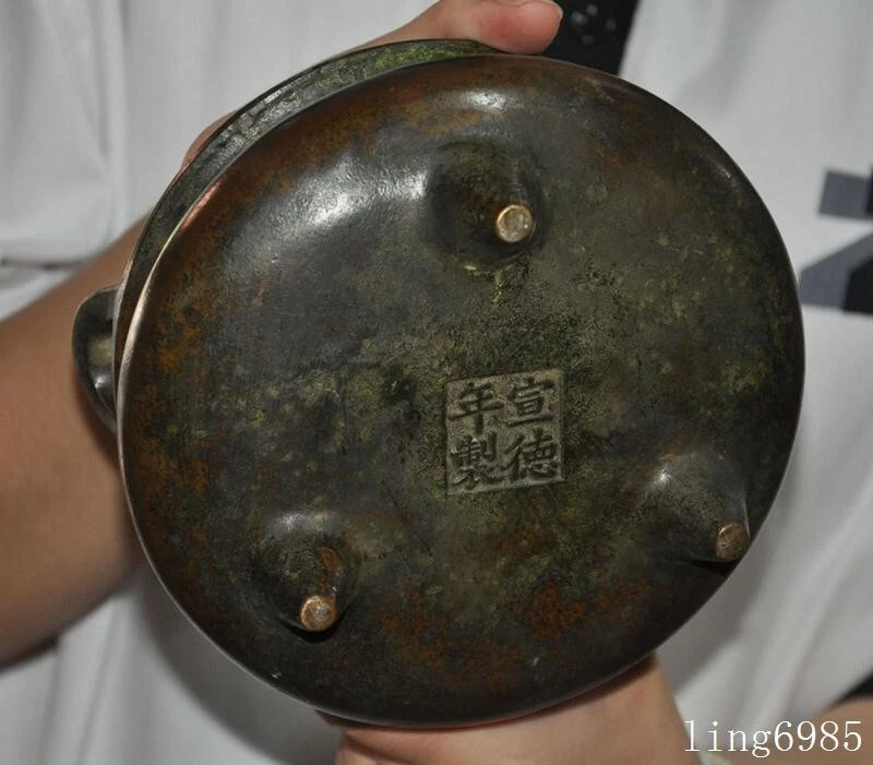 Here is an Mark China Buddhism temple bronze “宣德年制”Joss Incense burner Censer statue , As you can see the image, It is in good condition, and was created by skilled craftsmen in traditional style with fine handcrafts . This is a great piece of valuable collection, a valuable personal alter or a very good present. the handwork is very fine with incredible detailing. Don't miss out this chance to get it .Wish you good luck! Size: Height :4 i nch .Long:6 inch . width:6 inch Size: Height :10 CM .Long:15 CM . width:15 CM Weight: 2.2 KG----included the weight of packing materials Materials: bronze Condition: Good condition Origin: China Shipping cost by Air Mail (7-15 days ) : $Free D.G.BB DXM&YU