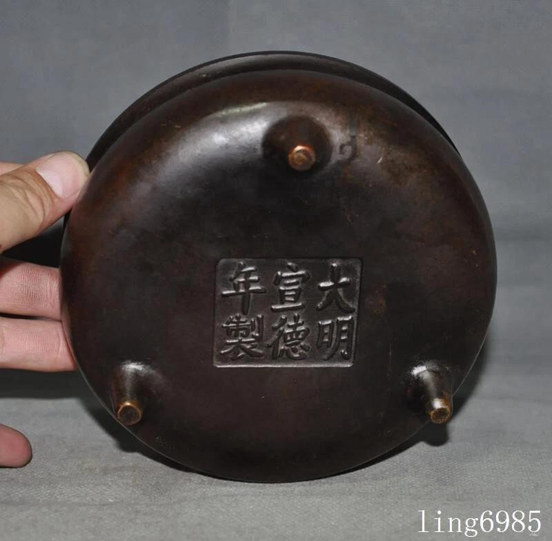 Here is an Mark China Chinese Buddhism temple bronze Joss Incense burner Censer statue , As you can see the image, It is in good condition, and was created by skilled craftsmen in traditional style with fine handcrafts . This is a great piece of valuable collection, a valuable personal alter or a very good present. the handwork is very fine with incredible detailing. Don't miss out this chance to get it .Wish you good luck! Size: Height :3.2 i nch .Long:5.8 inch . width:5.8 inch Size: Height :8 CM .Long:14.5 CM . width:14.5 CM Weight: 2.2 KG ----included the weight of packing materials Materials: bronze Condition: Good condition Origin: China Shipping cost by Air Mail (7-15 days ) : $Free D.F.BB Z