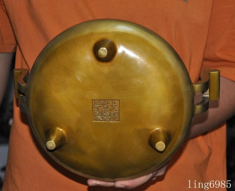 Here is an Mark China Chinese Buddhism temple bronze Joss Incense burner Censer statue , As you can see the image, It is in good condition, and was created by skilled craftsmen in traditional style with fine handcrafts . This is a great piece of valuable collection, a valuable personal alter or a very good present. the handwork is very fine with incredible detailing. Don't miss out this chance to get it .Wish you good luck! Size: Height :5.6 i nch .Long:11.2 inch . width:8.4 inch Size: Height :14 CM .Long:28 CM . width:21 CM Weight: 4.5 KG----included the weight of packing materials Materials : bronze Condition: Good condition Origin: China Shipping cost by Air Mail (7-15 days ) : $Free D.F.BH DD&LH