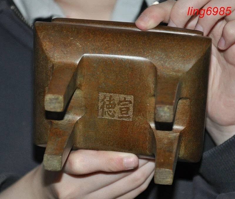 Here is an Mark China Chinese Buddhism temple bronze “宣德”Joss Incense burner Censer , As you can see the image, It is in good condition, and was created by skilled craftsmen in traditional style with fine handcrafts . This is a great piece of valuable collection, a valuable personal alter or a very good present. the handwork is very fine with incredible detailing. Don't miss out this chance to get it .Wish you good luck! Size: Height :5.2 i nch .Long:4.8 inch . width:3.6 inch Size: Height :13 CM .Long:12 CM . width:9 CM Weight: 1.2 KG----included the weight of packing materials Materials : bronze Condition: Good condition Origin: China Shipping cost by Air Mail (7-15 days ) : $Free D.E.BI DD&LH