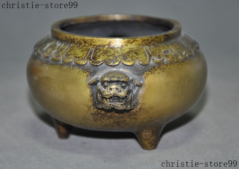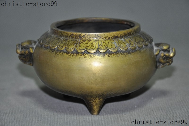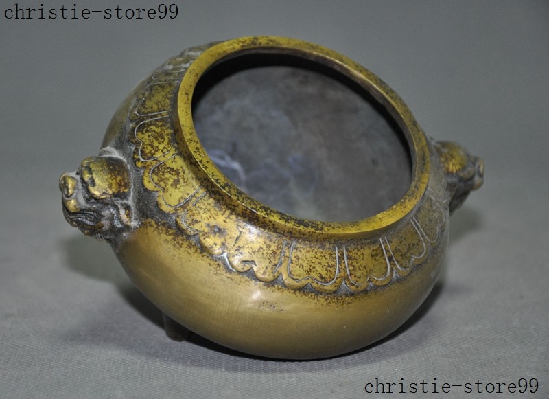 Here is an Marked China Ancestral hall joss Lion Foo dog Head Statue Incense burner Censer , As you can see the image, It is in good condition, and was created by skilled craftsmen in traditional style with fine handcrafts . This is a great piece of valuable collection, a valuable personal alter or a very good present. the handwork is very fine with incredible detailing. Don't miss out this chance to get it .Wish you good luck! Size: Height: 2.8 inch .Long: 5.6 inch . breadth: 4.4 inch Size: Height: 7 cm .Long: 14 cm . breadth 11 cm Weight: 0.8 KG----included the weight of packing materials Materials: Bronze Condition: Good condition Origin: China Shipping cost by EMS Express Mail ( 7------15 days ) : $Free we only accept paypal if you have any problems on payment,please inform us via ebay message . 1.We ship regularly Monday to Saturday (Beijing Time) and will ship your items within 1-2 days upon payment received. If we can not ship your item on time for some special reason, we will inform you via ebay message. 2.We are not responsible for nor can we offer any specific advices on import fees, duty, customs, VAT or taxes that you may have to pay when your order arrives. 3.We ship the items according to your Paypal address except the special notes from buyers! Be sure that your Paypal address is correct when you buy the items in ebay. We do not take responsibility for item loss due to wrong address. 4.Estimated delivery time: Shipping may be influenced by holidays, events and some other uncertainties. If you dislike the seemingly long shipping time, please think carefully to bid or buy the item. We do not want to get a negative or neutral or low DSR score because of shipping time. If you have special demand on shipping time, please inform me via ebay message. We want to give you a happy shopping experience, when you are not satisfied with our products, please contact us on EBAY, we are responsible seller, we will solve your problem, please believe us,thanks! If you're in any way dissatisfied with your purchase, let me know through "MY MESSAGES" or "Ask Seller Questions" or our mailbox. We will solve it for you. We are committed to ensuring that you are completely satisfied with every transaction. 100% Satisfaction guaranteed ! We will reply your mail with in 24 hours normally. Sometimes have a little delay due to the weekends or holidays. If you can't get our mail after 48 hours, please check your spam or contact to us via Ebay. In addition to contact us through eBay or you can send your message to our mailbox. Any question, please feel free to contact us, we will always do our best to serve you. Business Hours: Mon-Sat 9:00-17:30:00 (HongKong Time GMT+8:00) 180106JLH