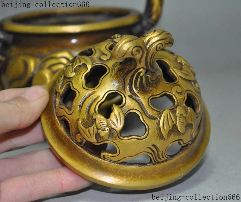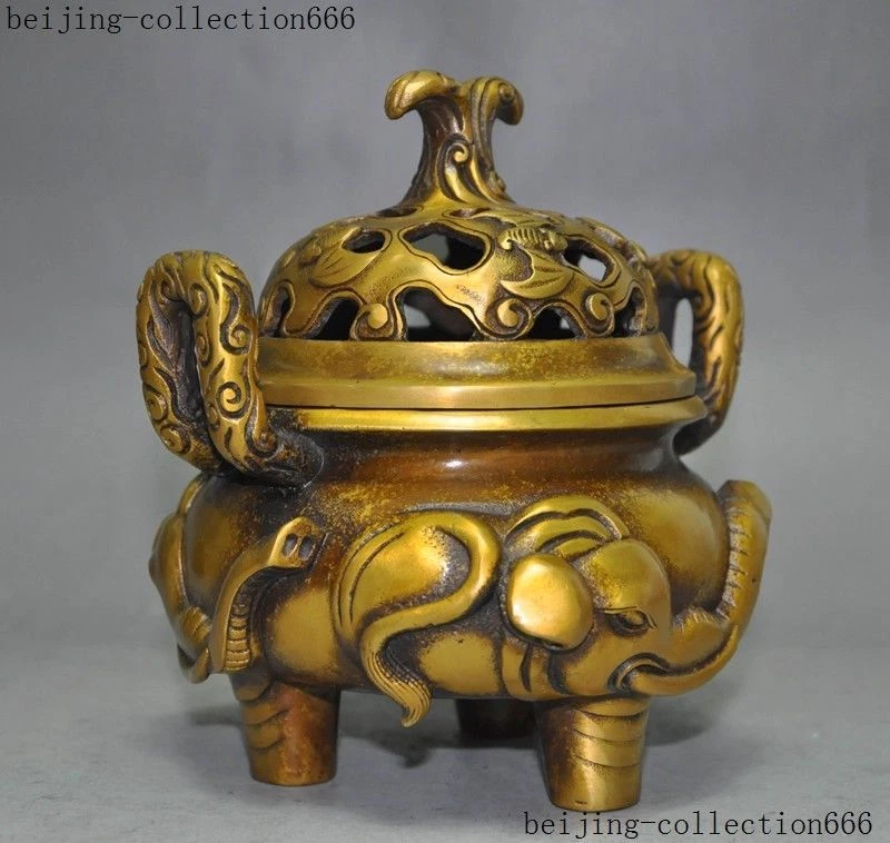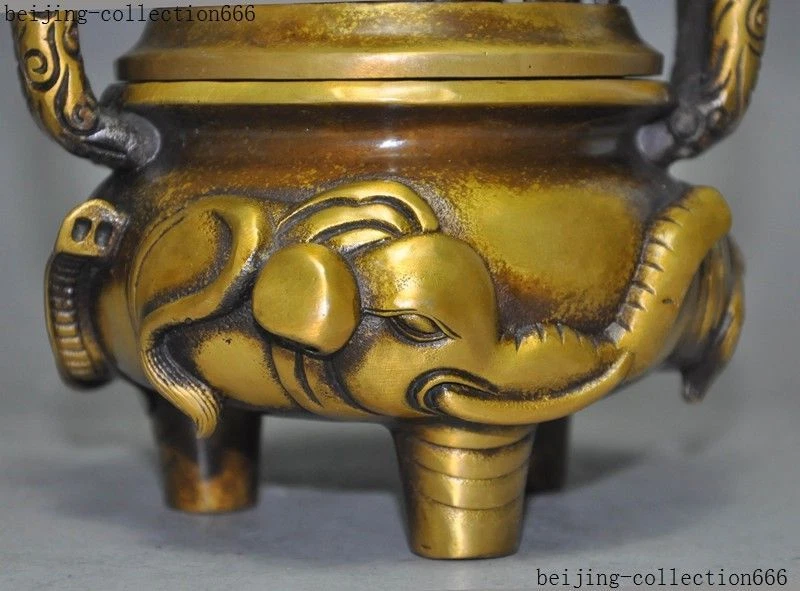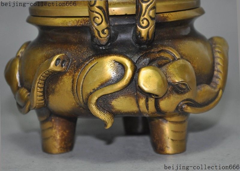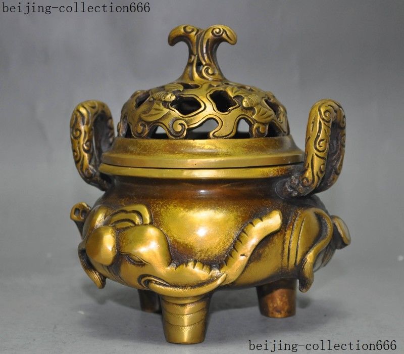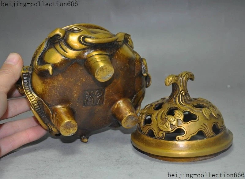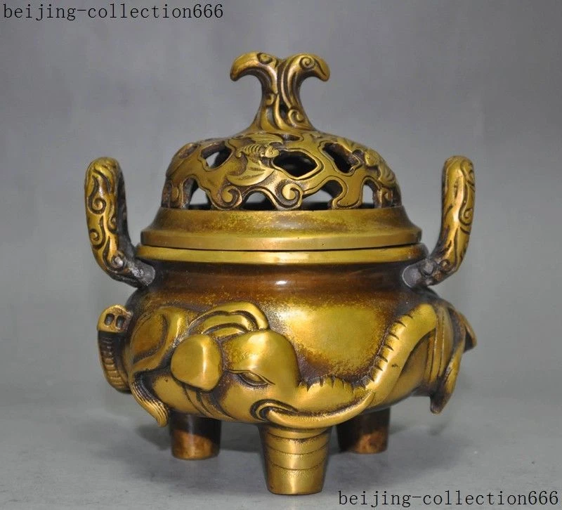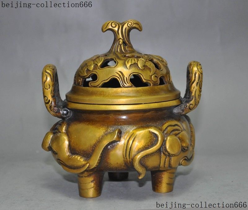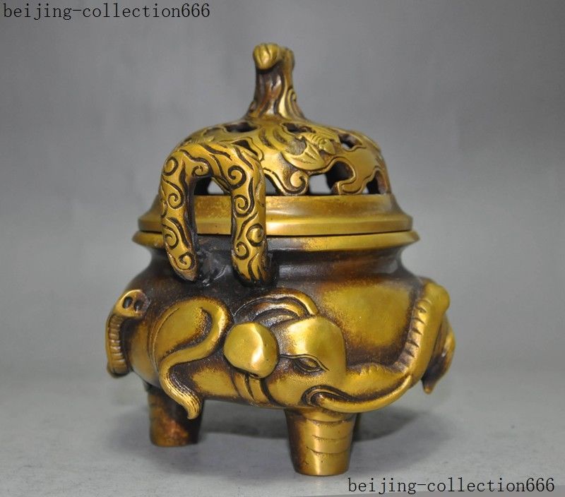 Here is an Marked Old China Buddhism joss Bronze Bat Elephant Tripod Incense Burner Censer , As you can see the image, It is in good condition, and was created by skilled craftsmen in traditional style with fine handcrafts . This is a great piece of valuable collection, a valuable personal alter or a very good present. the handwork is very fine with incredible detailing. Don't miss out this chance to get it .Wish you good luck! Size: Height: 5.2 inch .Long: 5.6 inch . breadth: 4.8 inch Size: Height: 13 cm .Long: 14 cm . breadth 12 cm Weight: 1.8 KG----included the weight of packing materials Materials: Bronze Condition: Good condition Origin: China Shipping cost by EMS Express Mail ( 7------15 days ) : $Free we only accept paypal if you have any problems on payment,please inform us via ebay message . 1.We ship regularly Monday to Saturday (Beijing Time) and will ship your items within 1-2 days upon payment received. If we can not ship your item on time for some special reason, we will inform you via ebay message. 2.We are not responsible for nor can we offer any specific advices on import fees, duty, customs, VAT or taxes that you may have to pay when your order arrives. 3.We ship the items according to your Paypal address except the special notes from buyers! Be sure that your Paypal address is correct when you buy the items in ebay. We do not take responsibility for item loss due to wrong address. 4.Estimated delivery time: Shipping may be influenced by holidays, events and some other uncertainties. If you dislike the seemingly long shipping time, please think carefully to bid or buy the item. We do not want to get a negative or neutral or low DSR score because of shipping time. If you have special demand on shipping time, please inform me via ebay message. We want to give you a happy shopping experience, when you are not satisfied with our products, please contact us on EBAY, we are responsible seller, we will solve your problem, please believe us,thanks! If you're in any way dissatisfied with your purchase, let me know through "MY MESSAGES" or "Ask Seller Questions" or our mailbox. We will solve it for you. We are committed to ensuring that you are completely satisfied with every transaction. 100% Satisfaction guaranteed ! We will reply your mail with in 24 hours normally. Sometimes have a little delay due to the weekends or holidays. If you can't get our mail after 48 hours, please check your spam or contact to us via Ebay. In addition to contact us through eBay or you can send your message to our mailbox. Any question, please feel free to contact us, we will always do our best to serve you. Business Hours: Mon-Sat 9:00-17:30:00 (HongKong Time GMT+8:00) 171107 JLH