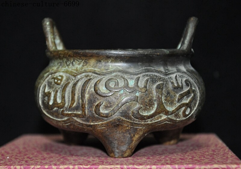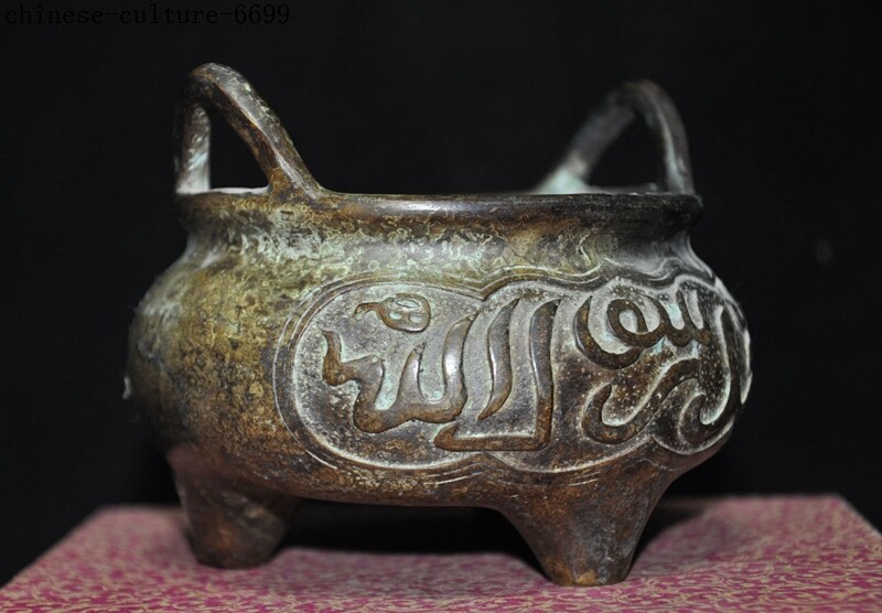 Here is an Marked Marked Old Chinese bronze Buddhism Islamic text joss Incense Burner cense , It is in good condition, and was created by skilled craftsmen in traditional style with fine handcrafts . ...
