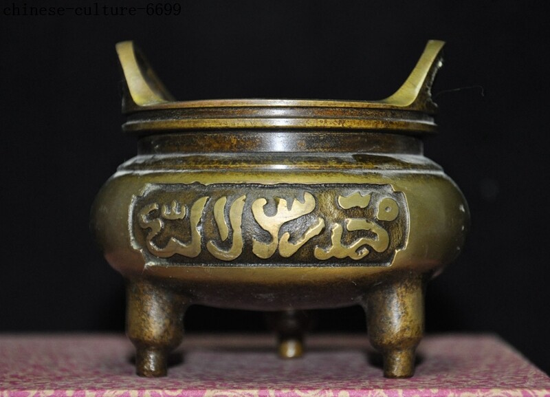 Here is an Marked Marked Old Chinese bronze Buddhism Islamic text joss Incense Burner cense , It is in good condition, and was created by skilled craftsmen in traditional style with fine handcrafts . This is a great piece of valuable collection, a valuable personal alter or a very good present. the handwork is very fine with incredible detailing. Don't miss out this chance to get it .Wish you good luck! Size:Height: 3.4 inch . Long: 3.6 inch . width: 3.6 inch Size:Height : 8.5 CM . Long: 9 cm . width: 9 cm Weight: 0.6 KG----included the weight of packing materials Materials: bronze Condition: Good condition Origin: China Shipping cost by Air Mail / EMS (7-15 days ) : $Free we only accept paypal if you have any problems on payment,please inform us via ebay message . 1.We ship regularly Monday to Saturday (Beijing Time) and will ship your items within 1-2 days upon payment received. If we can not ship your item on time for some special reason, we will inform you via ebay message. 2.We are not responsible for nor can we offer any specific advices on import fees, duty, customs, VAT or taxes that you may have to pay when your order arrives. 3.We ship the items according to your Paypal address except the special notes from buyers! Be sure that your Paypal address is correct when you buy the items in ebay. We do not take responsibility for item loss due to wrong address. 4.Estimated delivery time: Shipping may be influenced by holidays, events and some other uncertainties. If you dislike the seemingly long shipping time, please think carefully to bid or buy the item. We do not want to get a negative or neutral or low DSR score because of shipping time. If you have special demand on shipping time, please inform me via ebay message. We want to give you a happy shopping experience, when you are not satisfied with our products, please contact us on EBAY, we are responsible seller, we will solve your problem, please believe us,thanks! If you're in any way dissatisfied with your purchase, let me know through "MY MESSAGES" or "Ask Seller Questions" or our mailbox. We will solve it for you. We are committed to ensuring that you are completely satisfied with every transaction. 100% Satisfaction guaranteed ! We will reply your mail with in 24 hours normally. Sometimes have a little delay due to the weekends or holidays. If you can't get our mail after 48 hours, please check your spam or contact to us via Ebay. B L AG Z In addition to contact us through eBay or you can send your message to our mailbox. Any question, please feel free to contact us, we will always do our best to serve you. Business Hours: Mon-Sat 9:00-17:30:00 (HongKong Time GMT+8:00)