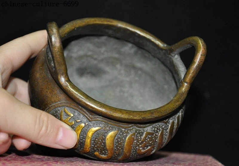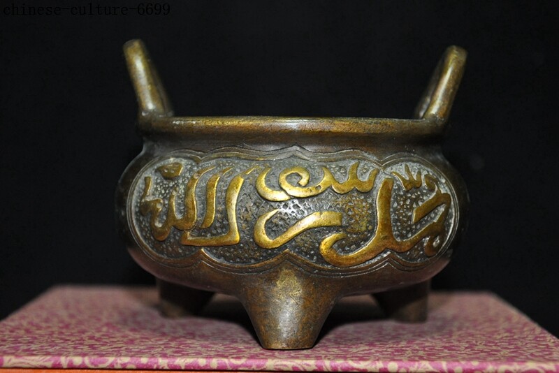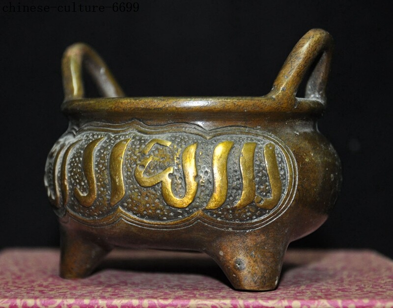 Here is an Marked Marked Old Chinese bronze Buddhism Islamic text joss Incense Burner cense , It is in good condition, and was created by skilled craftsmen in traditional style with fine handcrafts . This is a great piece of valuable collection, a valuable personal alter or a very good present. the handwork is very fine with incredible detailing. Don't miss out this chance to get it .Wish you good luck! Size:Height: 3.4 inch . Long: 3.6 inch . width: 3.8 inch Size:Height : 8.5 CM . Long: 9 cm . width: 9.5 cm Weight: 0.7 KG----included the weight of packing materials Materials: bronze Condition: Good condition Origin: China Shipping cost by Air Mail / EMS (7-15 days ) : $Free we only accept paypal if you have any problems on payment,please inform us via ebay message . 1.We ship regularly Monday to Saturday (Beijing Time) and will ship your items within 1-2 days upon payment received. If we can not ship your item on time for some special reason, we will inform you via ebay message. 2.We are not responsible for nor can we offer any specific advices on import fees, duty, customs, VAT or taxes that you may have to pay when your order arrives. 3.We ship the items according to your Paypal address except the special notes from buyers! Be sure that your Paypal address is correct when you buy the items in ebay. We do not take responsibility for item loss due to wrong address. 4.Estimated delivery time: Shipping may be influenced by holidays, events and some other uncertainties. If you dislike the seemingly long shipping time, please think carefully to bid or buy the item. We do not want to get a negative or neutral or low DSR score because of shipping time. If you have special demand on shipping time, please inform me via ebay message. We want to give you a happy shopping experience, when you are not satisfied with our products, please contact us on EBAY, we are responsible seller, we will solve your problem, please believe us,thanks! If you're in any way dissatisfied with your purchase, let me know through "MY MESSAGES" or "Ask Seller Questions" or our mailbox. We will solve it for you. We are committed to ensuring that you are completely satisfied with every transaction. 100% Satisfaction guaranteed ! We will reply your mail with in 24 hours normally. Sometimes have a little delay due to the weekends or holidays. If you can't get our mail after 48 hours, please check your spam or contact to us via Ebay. B L AG Z In addition to contact us through eBay or you can send your message to our mailbox. Any question, please feel free to contact us, we will always do our best to serve you. Business Hours: Mon-Sat 9:00-17:30:00 (HongKong Time GMT+8:00)