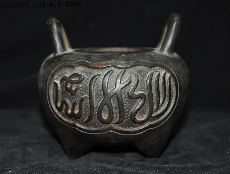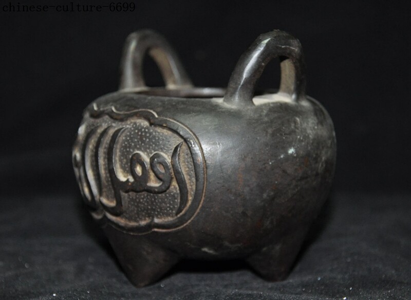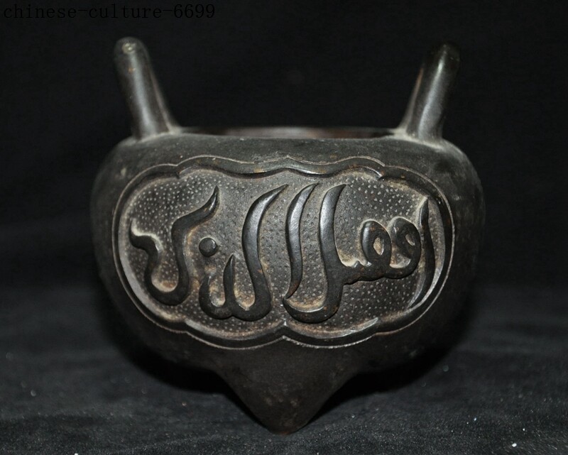 Here is an Marked Marked Old Chinese bronze Buddhism Islamic text joss Incense Burner cense , It is in good condition, and was created by skilled craftsmen in traditional style with fine handcrafts . This is a great piece of valuable collection, a valuable personal alter or a very good present. the handwork is very fine with incredible detailing. Don't miss out this chance to get it .Wish you good luck! Size:Height: 4.2 inch . Long: 4 inch . width: 4.4 inch Size:Height : 10.5 CM . Long: 10 cm . width: 11 cm Weight: 1.2 KG----included the weight of packing materials Materials: bronze Condition: Good condition Origin: China Shipping cost by Air Mail / EMS (7-15 days ) : $Free we only accept paypal if you have any problems on payment,please inform us via ebay message . 1.We ship regularly Monday to Saturday (Beijing Time) and will ship your items within 1-2 days upon payment received. If we can not ship your item on time for some special reason, we will inform you via ebay message. 2.We are not responsible for nor can we offer any specific advices on import fees, duty, customs, VAT or taxes that you may have to pay when your order arrives. 3.We ship the items according to your Paypal address except the special notes from buyers! Be sure that your Paypal address is correct when you buy the items in ebay. We do not take responsibility for item loss due to wrong address. 4.Estimated delivery time: Shipping may be influenced by holidays, events and some other uncertainties. If you dislike the seemingly long shipping time, please think carefully to bid or buy the item. We do not want to get a negative or neutral or low DSR score because of shipping time. If you have special demand on shipping time, please inform me via ebay message. We want to give you a happy shopping experience, when you are not satisfied with our products, please contact us on EBAY, we are responsible seller, we will solve your problem, please believe us,thanks! If you're in any way dissatisfied with your purchase, let me know through "MY MESSAGES" or "Ask Seller Questions" or our mailbox. We will solve it for you. We are committed to ensuring that you are completely satisfied with every transaction. 100% Satisfaction guaranteed ! We will reply your mail with in 24 hours normally. Sometimes have a little delay due to the weekends or holidays. If you can't get our mail after 48 hours, please check your spam or contact to us via Ebay. B L AG Z In addition to contact us through eBay or you can send your message to our mailbox. Any question, please feel free to contact us, we will always do our best to serve you. Business Hours: Mon-Sat 9:00-17:30:00 (HongKong Time GMT+8:00)