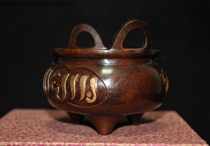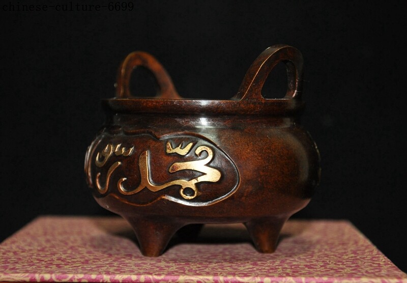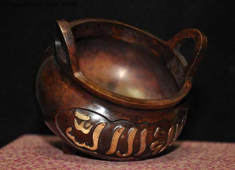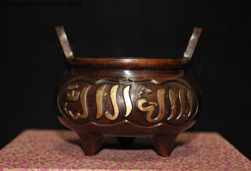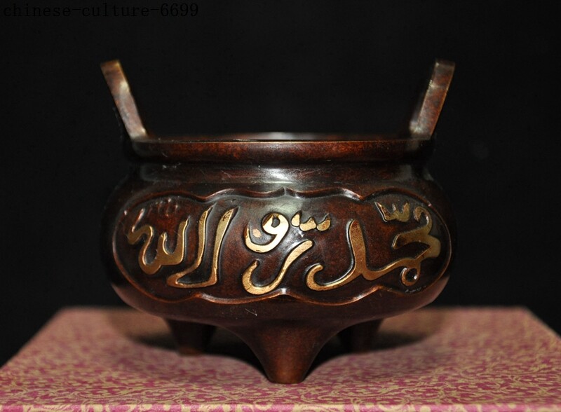 Here is an Marked Marked Old Chinese bronze Buddhism Islamic text joss Incense Burner cense , It is in good condition, and was created by skilled craftsmen in traditional style with fine handcrafts . This is a great piece of valuable collection, a valuable personal alter or a very good present. the handwork is very fine with incredible detailing. Don't miss out this chance to get it .Wish you good luck! Size:Height: 3.4 inch . Long: 3.6 inch . width: 4 inch Size:Height : 8.5 CM . Long: 9 cm . width: 10 cm Weight: 0.8 KG----included the weight of packing materials Materials: bronze Condition: Good condition Origin: China Shipping cost by Air Mail / EMS (7-15 days ) : $Free we only accept paypal if you have any problems on payment,please inform us via ebay message . 1.We ship regularly Monday to Saturday (Beijing Time) and will ship your items within 1-2 days upon payment received. If we can not ship your item on time for some special reason, we will inform you via ebay message. 2.We are not responsible for nor can we offer any specific advices on import fees, duty, customs, VAT or taxes that you may have to pay when your order arrives. 3.We ship the items according to your Paypal address except the special notes from buyers! Be sure that your Paypal address is correct when you buy the items in ebay. We do not take responsibility for item loss due to wrong address. 4.Estimated delivery time: Shipping may be influenced by holidays, events and some other uncertainties. If you dislike the seemingly long shipping time, please think carefully to bid or buy the item. We do not want to get a negative or neutral or low DSR score because of shipping time. If you have special demand on shipping time, please inform me via ebay message. We want to give you a happy shopping experience, when you are not satisfied with our products, please contact us on EBAY, we are responsible seller, we will solve your problem, please believe us,thanks! If you're in any way dissatisfied with your purchase, let me know through "MY MESSAGES" or "Ask Seller Questions" or our mailbox. We will solve it for you. We are committed to ensuring that you are completely satisfied with every transaction. 100% Satisfaction guaranteed ! We will reply your mail with in 24 hours normally. Sometimes have a little delay due to the weekends or holidays. If you can't get our mail after 48 hours, please check your spam or contact to us via Ebay. B L AG Z In addition to contact us through eBay or you can send your message to our mailbox. Any question, please feel free to contact us, we will always do our best to serve you. Business Hours: Mon-Sat 9:00-17:30:00 (HongKong Time GMT+8:00)