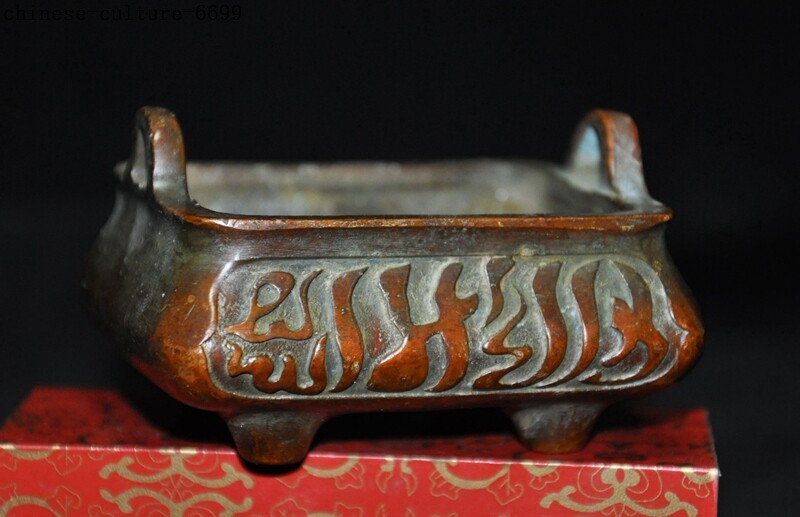 Here is an Marked Marked Old Chinese bronze Buddhism Islamic text joss Incense Burner cense , It is in good condition, and was created by skilled craftsmen in traditional style with fine handcrafts . This is a great piece of valuable collection, a valuable personal alter or a very good present. the handwork is very fine with incredible detailing. Don't miss out this chance to get it .Wish you good luck! Size:Height: 1.8 inch . Long: 3 inch . width: 2.6 inch Size:Height : 4.5 CM . Long: 7.5 cm . width: 6.5 cm Weight: 0.4 KG----included the weight of packing materials Materials: bronze Condition: Good condition Origin: China Shipping cost by Air Mail / EMS (7-15 days ) : $Free we only accept paypal if you have any problems on payment,please inform us via ebay message . 1.We ship regularly Monday to Saturday (Beijing Time) and will ship your items within 1-2 days upon payment received. If we can not ship your item on time for some special reason, we will inform you via ebay message. 2.We are not responsible for nor can we offer any specific advices on import fees, duty, customs, VAT or taxes that you may have to pay when your order arrives. 3.We ship the items according to your Paypal address except the special notes from buyers! Be sure that your Paypal address is correct when you buy the items in ebay. We do not take responsibility for item loss due to wrong address. 4.Estimated delivery time: Shipping may be influenced by holidays, events and some other uncertainties. If you dislike the seemingly long shipping time, please think carefully to bid or buy the item. We do not want to get a negative or neutral or low DSR score because of shipping time. If you have special demand on shipping time, please inform me via ebay message. We want to give you a happy shopping experience, when you are not satisfied with our products, please contact us on EBAY, we are responsible seller, we will solve your problem, please believe us,thanks! If you're in any way dissatisfied with your purchase, let me know through "MY MESSAGES" or "Ask Seller Questions" or our mailbox. We will solve it for you. We are committed to ensuring that you are completely satisfied with every transaction. 100% Satisfaction guaranteed ! We will reply your mail with in 24 hours normally. Sometimes have a little delay due to the weekends or holidays. If you can't get our mail after 48 hours, please check your spam or contact to us via Ebay. B L AA DD In addition to contact us through eBay or you can send your message to our mailbox. Any question, please feel free to contact us, we will always do our best to serve you. Business Hours: Mon-Sat 9:00-17:30:00 (HongKong Time GMT+8:00)