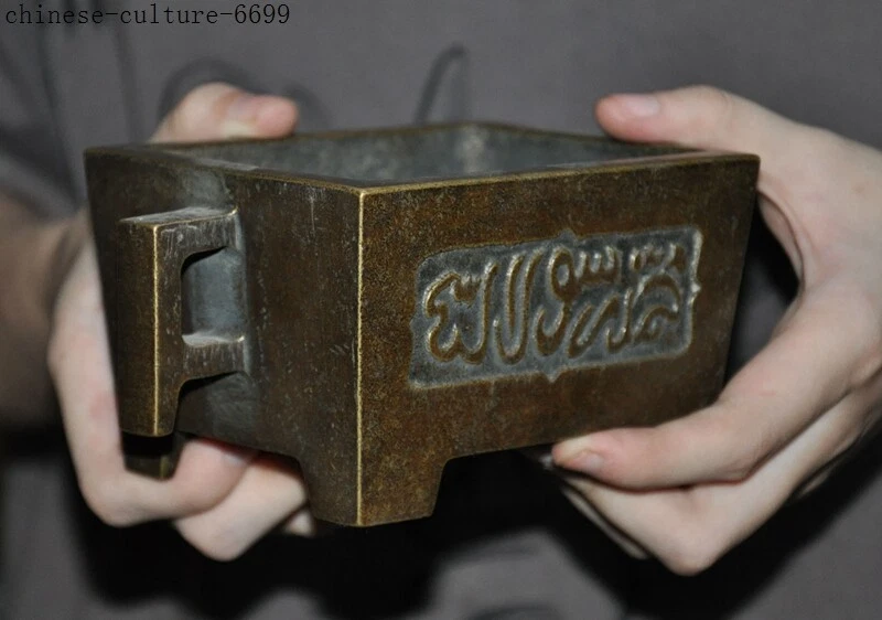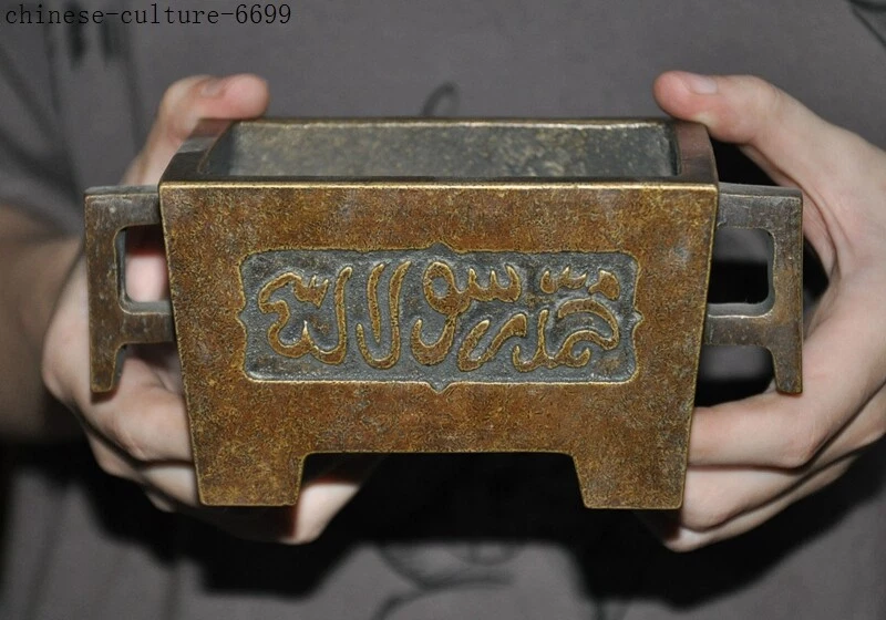 Here is an Marked Old Chinese bronze Buddhism Islamic text joss Incense Burner censer , As you can see the image, It is in good condition, and was created by skilled craftsmen in traditional style with fine handcrafts . This is a great piece of valuable collection, a valuable personal alter or a very good present. the handwork is very fine with incredible detailing. Don't miss out this chance to get it .Wish you good luck! Size:Height: 2.8 inch . Long: 6 inch . width: 3.6 inch Size:Height : 7 CM . Long: 15 cm . width: 9 cm Weight: 0.6 KG----included the weight of packing materials Materials: bronze Condition: Good condition Origin: China Shipping cost by Air Mail / EMS (7-15 days ) : $Free we only accept paypal if you have any problems on payment,please inform us via ebay message . 1.We ship regularly Monday to Saturday (Beijing Time) and will ship your items within 1-2 days upon payment received. If we can not ship your item on time for some special reason, we will inform you via ebay message. 2.We are not responsible for nor can we offer any specific advices on import fees, duty, customs, VAT or taxes that you may have to pay when your order arrives. 3.We ship the items according to your Paypal address except the special notes from buyers! Be sure that your Paypal address is correct when you buy the items in ebay. We do not take responsibility for item loss due to wrong address. 4.Estimated delivery time: Shipping may be influenced by holidays, events and some other uncertainties. If you dislike the seemingly long shipping time, please think carefully to bid or buy the item. We do not want to get a negative or neutral or low DSR score because of shipping time. If you have special demand on shipping time, please inform me via ebay message. We want to give you a happy shopping experience, when you are not satisfied with our products, please contact us on EBAY, we are responsible seller, we will solve your problem, please believe us,thanks! Please feel free to send us a message anytime when you have any questions. We will reply you in the shortest time. Your positive feedback is VERY important to us as we strive to provide the BEST service to you! Please kindly contact us before leaving a negative feedback, we will try our best to sort things out! Thank you for your visit! We hope you enjoy shopping at our store :):):) B.L.AA DD