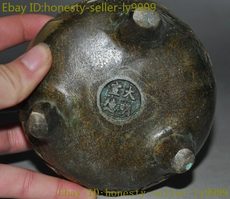 Here is an 4" Marked old Tibet buddhism bronze Tibetan text pray joss Incense Burner Censer , It is in good condition, and was created by skilled craftsmen in traditional style with fine handcrafts . This is a great piece of valuable collection, a valuable personal alter or a very good present. the handwork is very fine with incredible detailing. Don't miss out this chance to get it .Wish you good luck! Size: Height: 3.2 inches Length: 4 inches Width: 3.6 inches Size: Height: 8 cm Length: 10 cm Width: 9 cm Weight: 0.5 KG ---- Including the weight of the packaging material Material: Bronze Condition: Good condition Origin: China Airmail EMS shipping (7-15 days): Free 20221201 jlh