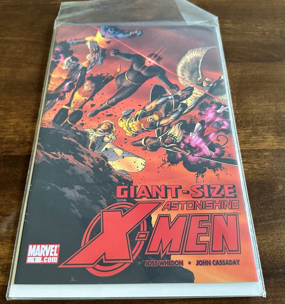 Marvel Comics Giant-Size Astonishing X-Men #1 (2008) Joss Whedon John Cassaday From my husband's personal collection. We are out of room! This was stored in bag and board. In very good condition with just minimal edgewear from reading and handling. Note that the little scratches on the spine in the pictures are just on the bag, not on the book itself. Thanks for viewing. Reach out with any questions. As with the other items he's had me list, this will be very carefully packaged and will ship out within one day of payment. And I am more than happy to combine shipments.