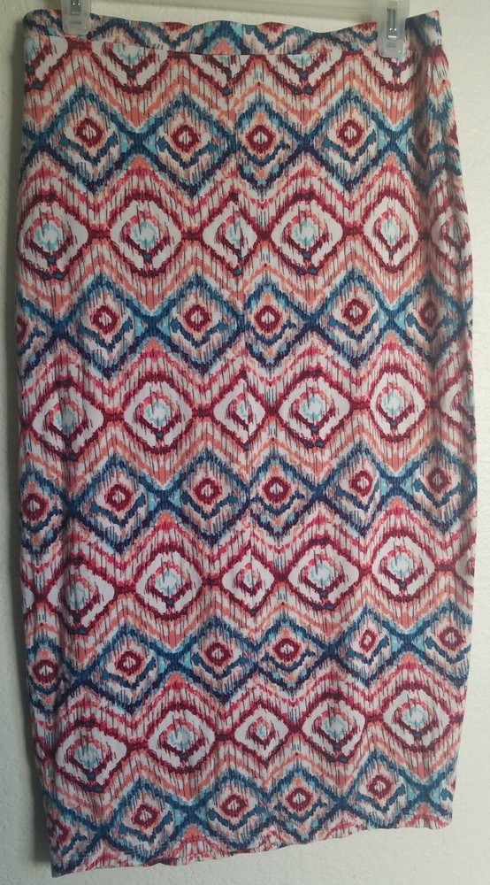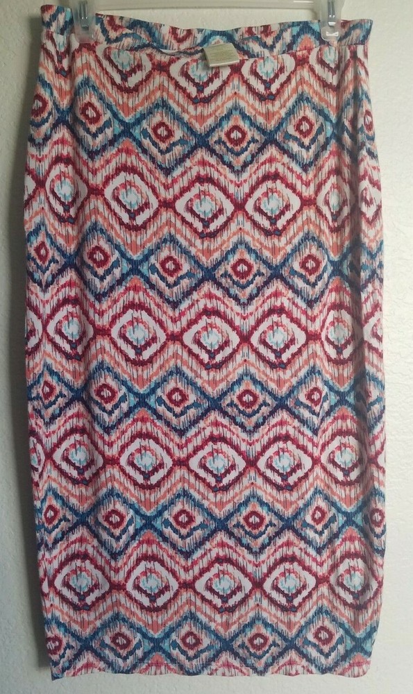 Matty M, Orange, Blue, Geometric Print Skirt. Size M. Great pre-owned condition. Ships USPS First Class Mail.