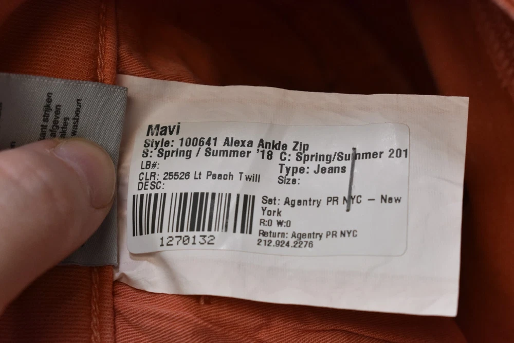Mavi Alexa Ankle Zip Skinny Mid Rise Denim Orange Jeans Slim Stretch Womens 27 Womens Size 27 Waist. 90%Cotton 7%Polyester 3%Elastane These jeans are sample jeans and new unworn condition with tags Please note we have a lot of similar jeans in our store, Search and save. Any savings automatically taken at checkout Why Shop with US? Customer Service is our #1 Priority Excellent Pricing Excellent Feedback Quality Assurance Fast Shipping Feedback If you are completely satisfied with your purchase please leave us positive feedback. If there is an issue with your order, please understand we are human and we do make mistakes. Please send us a message and give us a chance to resolve before returning or opening a dispute with eBay. Shipping Policy We will ship almost all items within 1 business day. All items ship from Kansas City MO and take 2-5 days depending on shipping service. On rare occasion, USPS or FedEx may delay a package. Please understand this is out of our control. If you order/pay before 12 PM CST we will try our best to get your package out same day. If you would like an express delivery option, please message us before purchasing, we can update the listing to reflect an express option. (Additional Shipping charges will apply) Disclaimer Prelovedclothes19 is not sponsored by or affiliated with the brands associated with the products being sold. Furthermore, there is no guarantee or assumption that we can provide support or offer any warranty on this product after purchase. Prelovedclothes19 Copyright © Prelovedclothes19