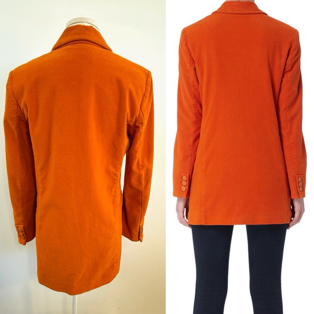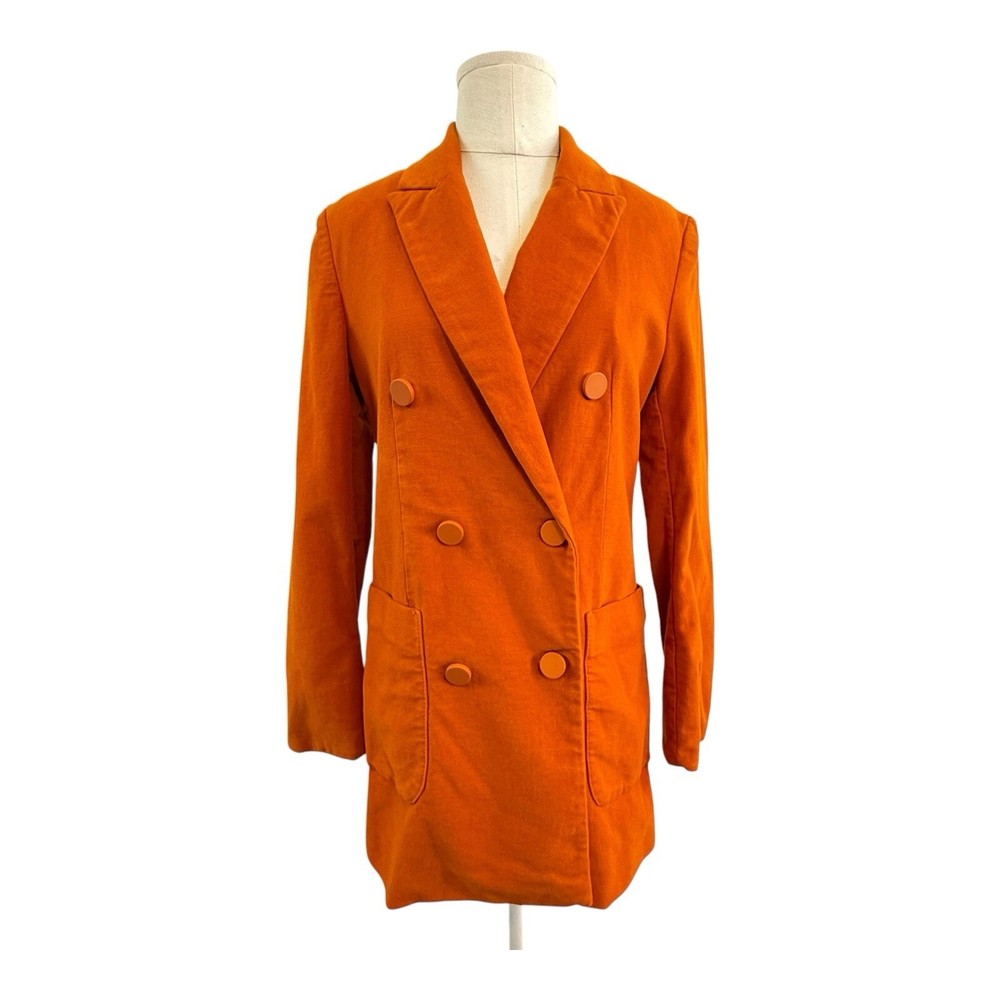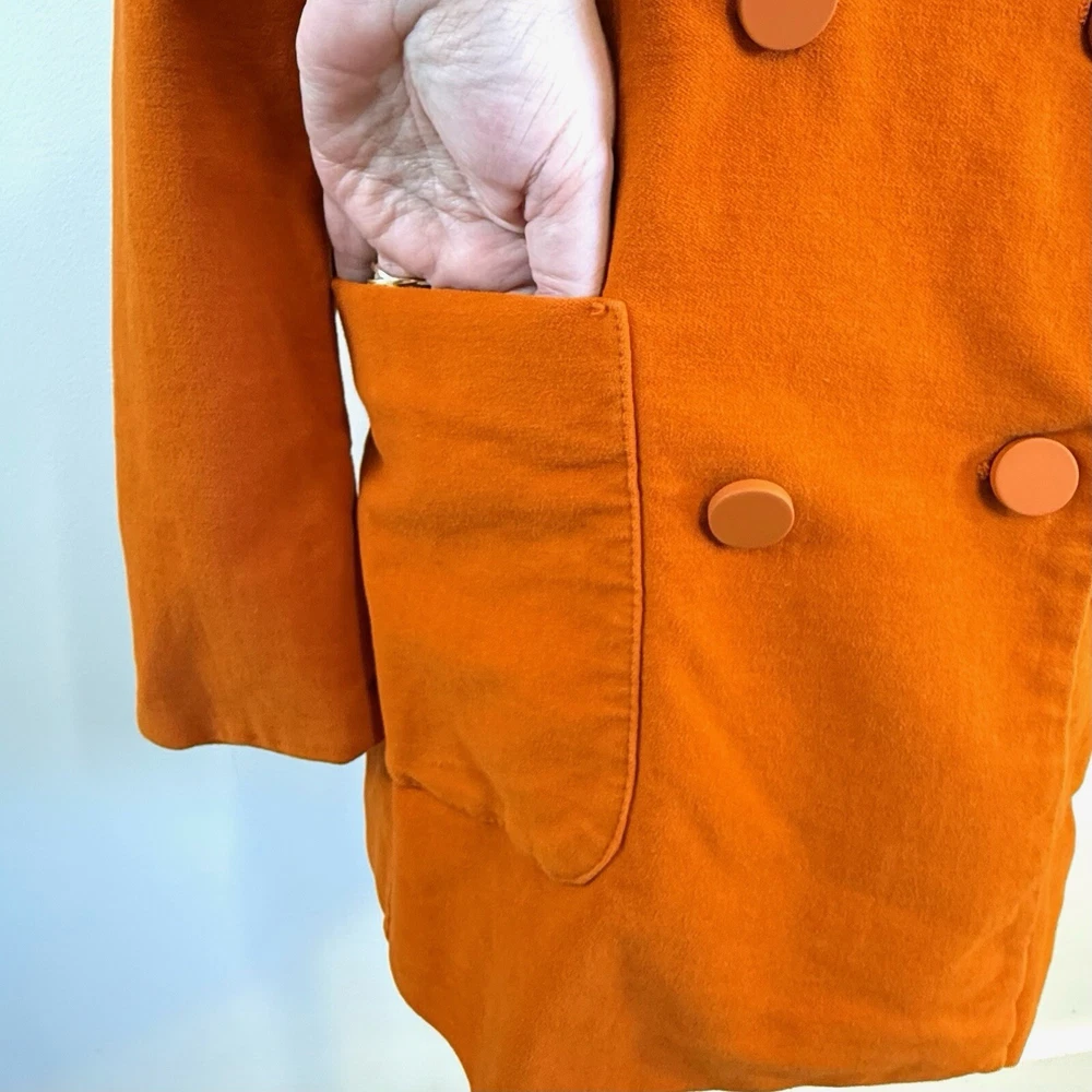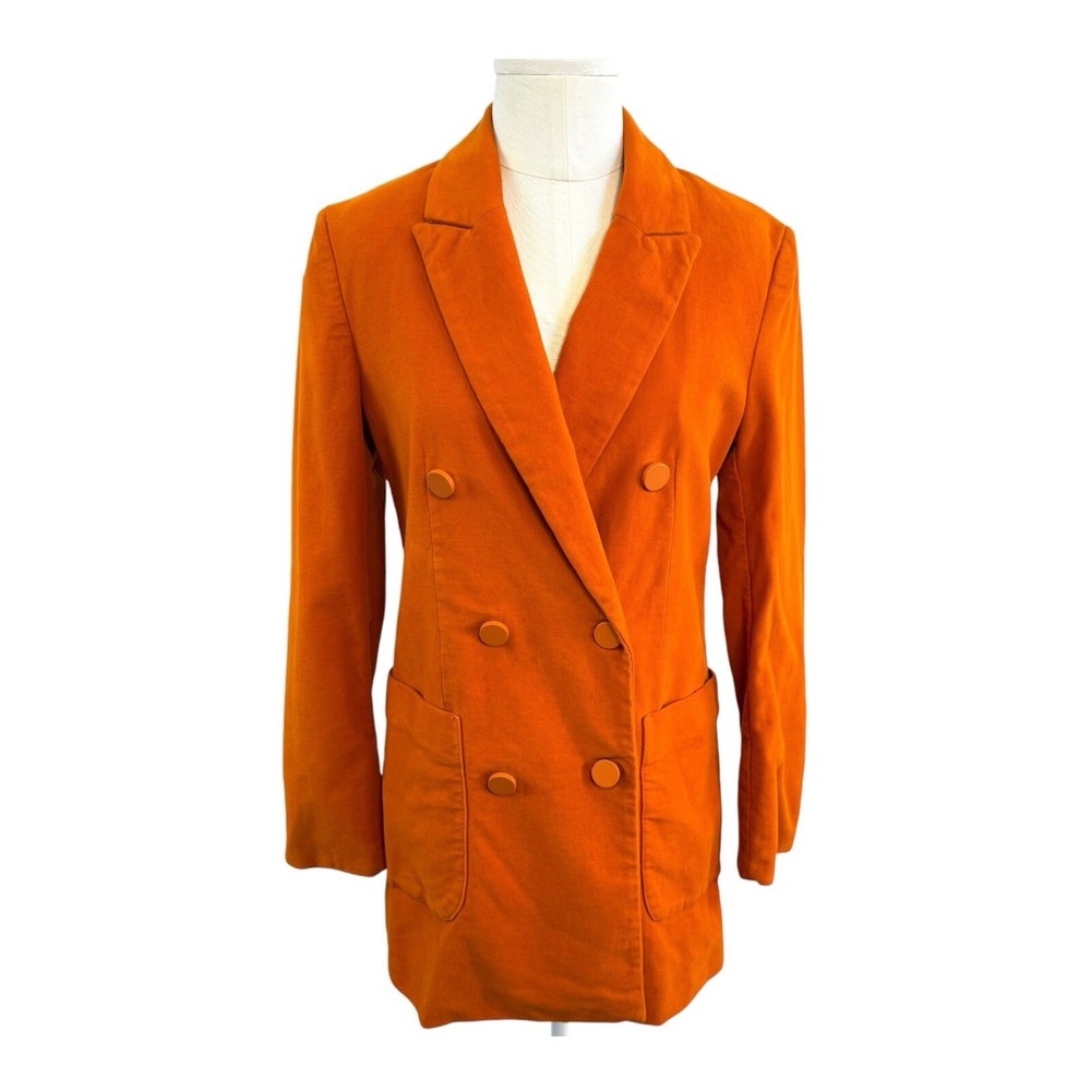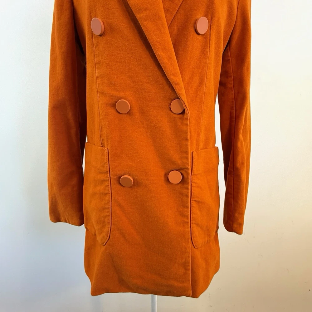 Welcome to Designer Loot and thanks for looking... Stay on-trend with this Max & Co Orange Velvet Double Breasted Fustian Blazer Jacket in size XS 6. Made from a comfortable Cotton Elastane blend, this mid-length blazer features long sleeves and a solid pattern. Perfect for any occasion from casual outings to business meetings, this designer piece is a must-have for your wardrobe. Complete with double button fastenings, lined interior, and pockets, this blazer is ideal for the cooler seasons of Winter, Autumn, and Spring. Elevate your style with this chic and versatile jacket from Max & Co (max Mara). New without tags Brand label has been removed Measurements, laid flat, unstretched, one side, in cm Width across back from underarm to underarm: 45cm Shoulder to hem length: 73cm We sell carefully curated designer clothing and accessories, and add new pieces regularly. TERMS + CONDITIONS Please see our excellent feedback. We are proud of our level of service and strive to be honest and reliable sellers. Our items have been well cared for, but have had a previous life. New pieces may be slightly shop soiled. All obvious flaws and marks are described. Photos form part of the item description. Colours can differ on screens. Larger size items may have been pinned on our dress form (which is a size 12). We have a smoke free home. Please feel free to ask any questions. Payment is required within 4 days. We use prepaid tracked Australia post satchels within Australia. For combined shipments we will fit as many items as possible into pre-paid satchels. We usually post on the same business day. International Postage is usually $28. Taxes and duties are the buyer's responsibility. Please let us know if you think we've missed something, and we'll fix it. We offer a full refund service and we will fairly resolve any issue. Returns will only be considered within 7 days of the buyer’s receipt of the item. The item must be returned via tracked mail. Buyer pays return post (unless we are at fault). Please give five star feedback and thanks for shopping with Designer Loot.