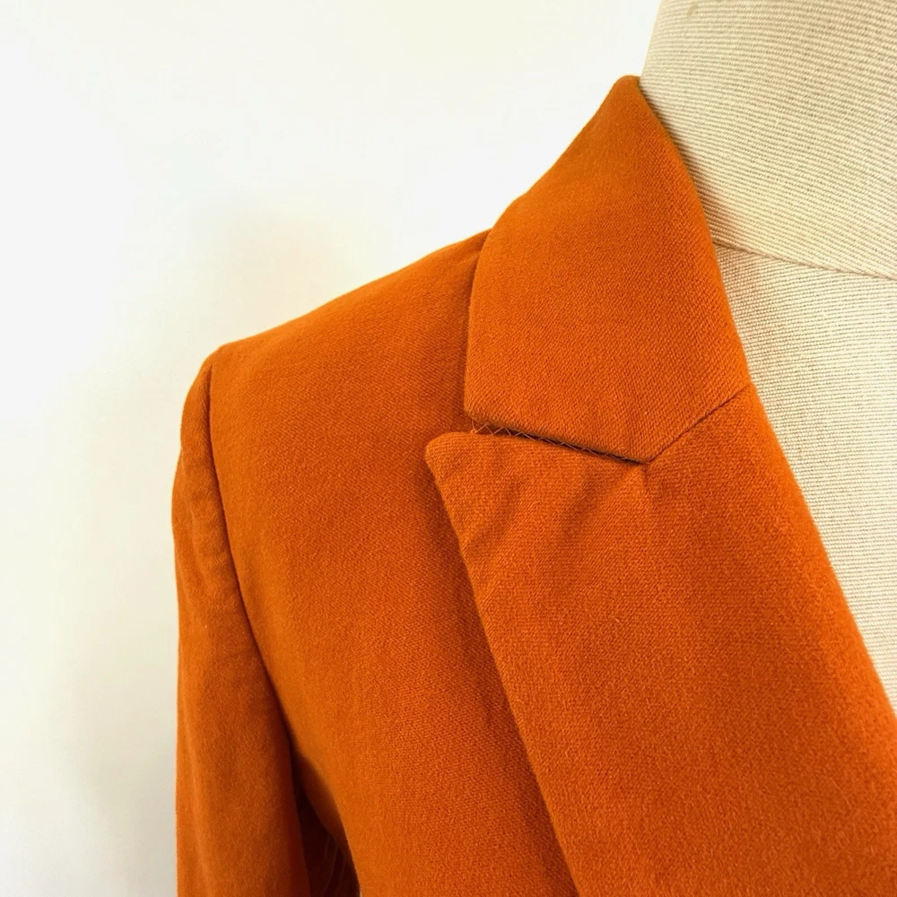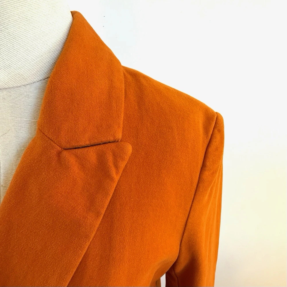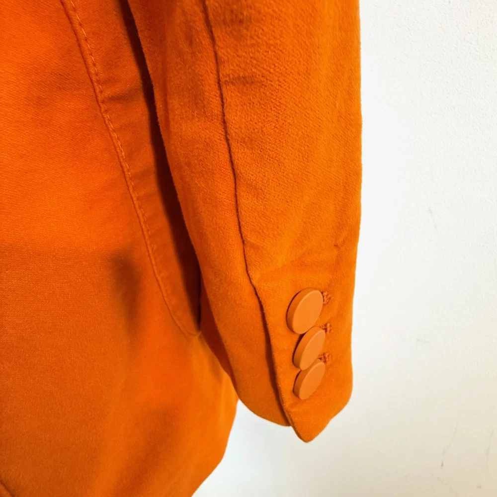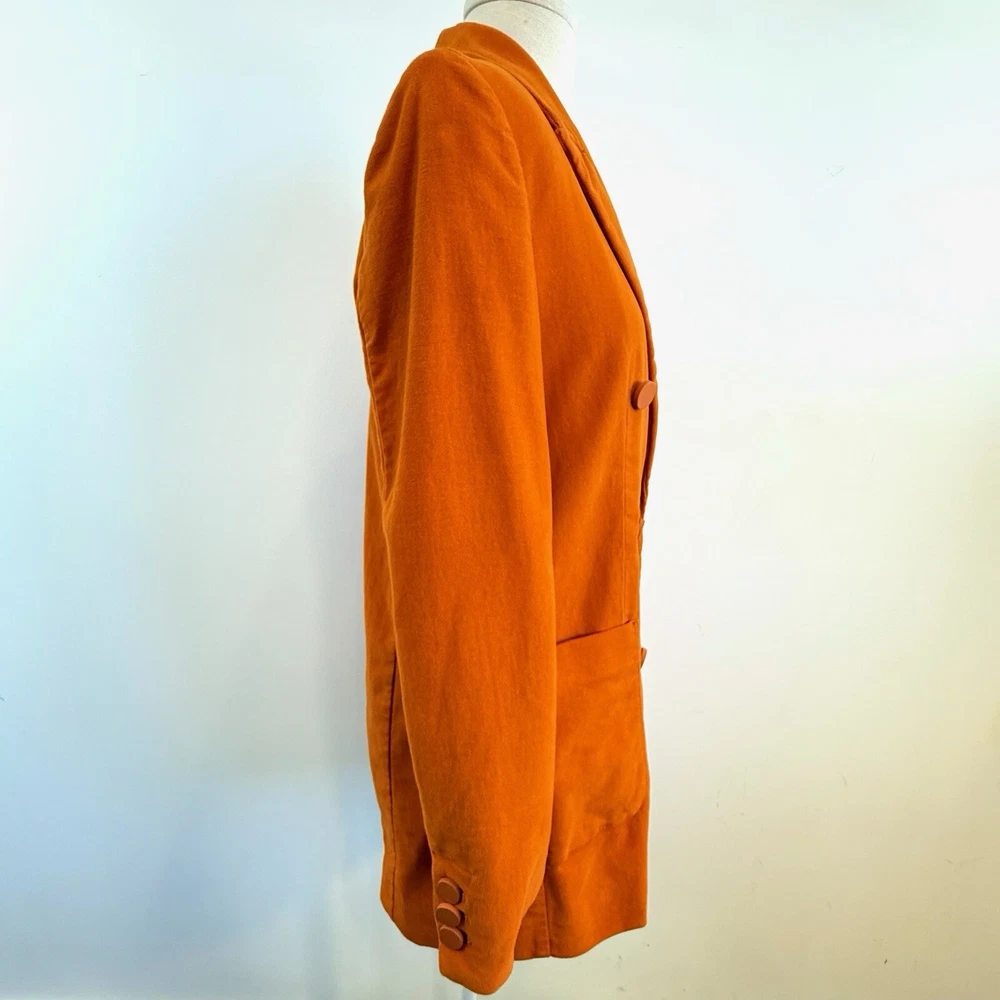 Welcome to Designer Loot and thanks for looking... Stay on-trend with this Max & Co Orange Velvet Double Breasted Fustian Blazer Jacket in size XS 6. Made from a comfortable Cotton Elastane blend, this mid-length blazer features long sleeves and a solid pattern. Perfect for any occasion from casual outings to business meetings, this designer piece is a must-have for your wardrobe. Complete with double button fastenings, lined interior, and pockets, this blazer is ideal for the cooler seasons of Winter, Autumn, and Spring. Elevate your style with this chic and versatile jacket from Max & Co (max Mara). New without tags Brand label has been removed Measurements, laid flat, unstretched, one side, in cm Width across back from underarm to underarm: 45cm Shoulder to hem length: 73cm We sell carefully curated designer clothing and accessories, and add new pieces regularly. TERMS + CONDITIONS Please see our excellent feedback. We are proud of our level of service and strive to be honest and reliable sellers. Our items have been well cared for, but have had a previous life. New pieces may be slightly shop soiled. All obvious flaws and marks are described. Photos form part of the item description. Colours can differ on screens. Larger size items may have been pinned on our dress form (which is a size 12). We have a smoke free home. Please feel free to ask any questions. Payment is required within 4 days. We use prepaid tracked Australia post satchels within Australia. For combined shipments we will fit as many items as possible into pre-paid satchels. We usually post on the same business day. International Postage is usually $28. Taxes and duties are the buyer's responsibility. Please let us know if you think we've missed something, and we'll fix it. We offer a full refund service and we will fairly resolve any issue. Returns will only be considered within 7 days of the buyer’s receipt of the item. The item must be returned via tracked mail. Buyer pays return post (unless we are at fault). Please give five star feedback and thanks for shopping with Designer Loot.