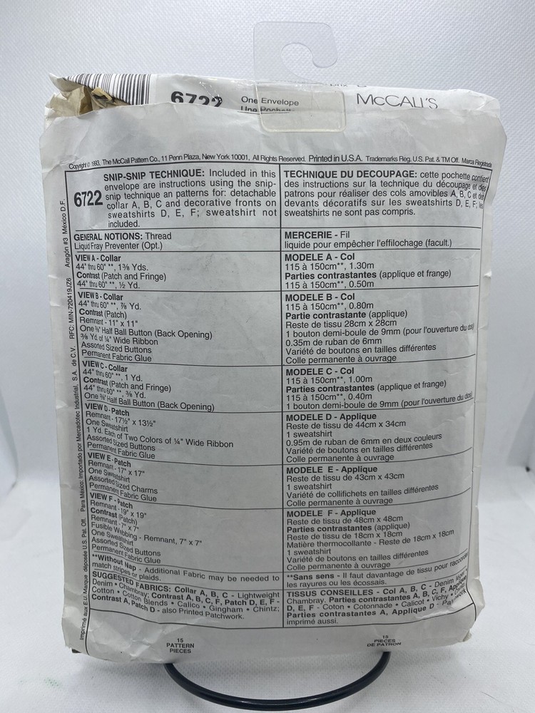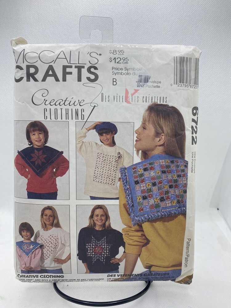 McCalls Crafts Creative Clothing Pattern 6722 Snip Technique Patch Collar.
