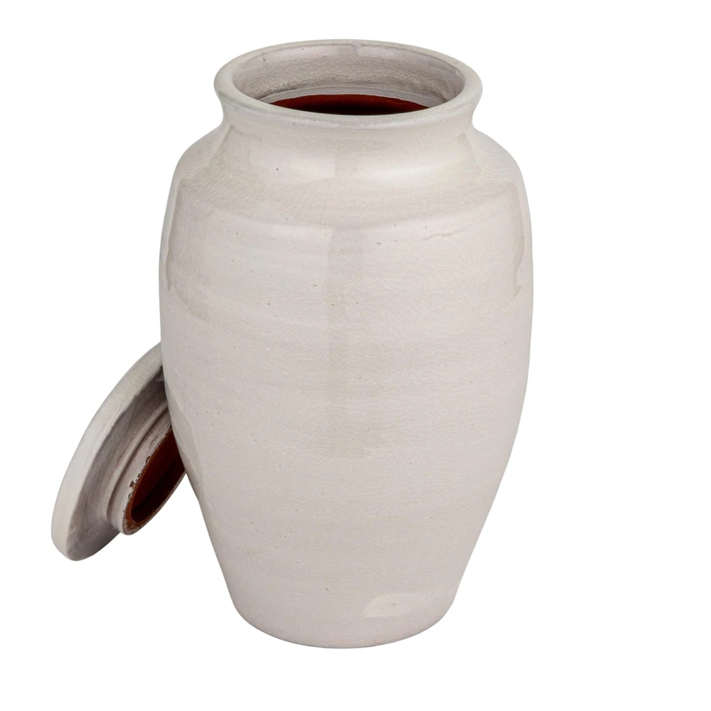 Medium Round White Terracotta Cachepot Product Details Size: 12 Inch Brand: Creative Co-Op MPN: DA7264 UPC: 807472979540 EAN: 0807472979540 Product Dimensions: 7.25 x 7.25 x 12 inches Item Weight: 8.5 pounds Manufacturer: Creative Co-Op Country of Origin: China Item model number: DA7264 Assembly required: No Number of pieces: 1 Warranty Description: None. Batteries required: No Terracotta construction Display this white terracotta pot in any space for a decorative piece The white terracotta vase can easily be displayed on a kitchen table or in an office for shelf decor 7. 25"L x 7. 25"W x 12"H Wipe clean with dry cloth This white cachepot will complement any shelf or table. Great for displaying fresh flowers or simply by itself as a decorative piece. Adds charm and easy to display in any space. With the included lid, you can also store items inside and keep your home looking neat and clean.