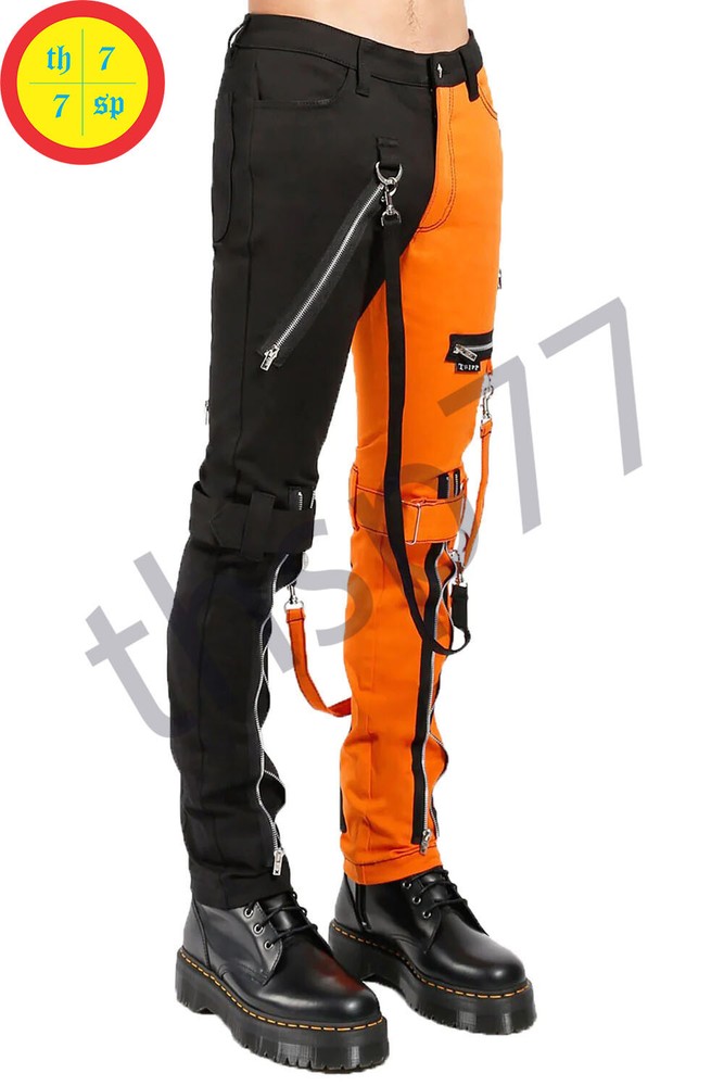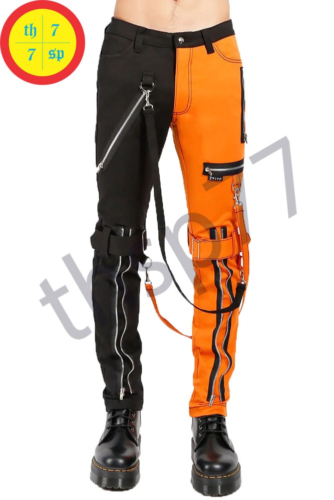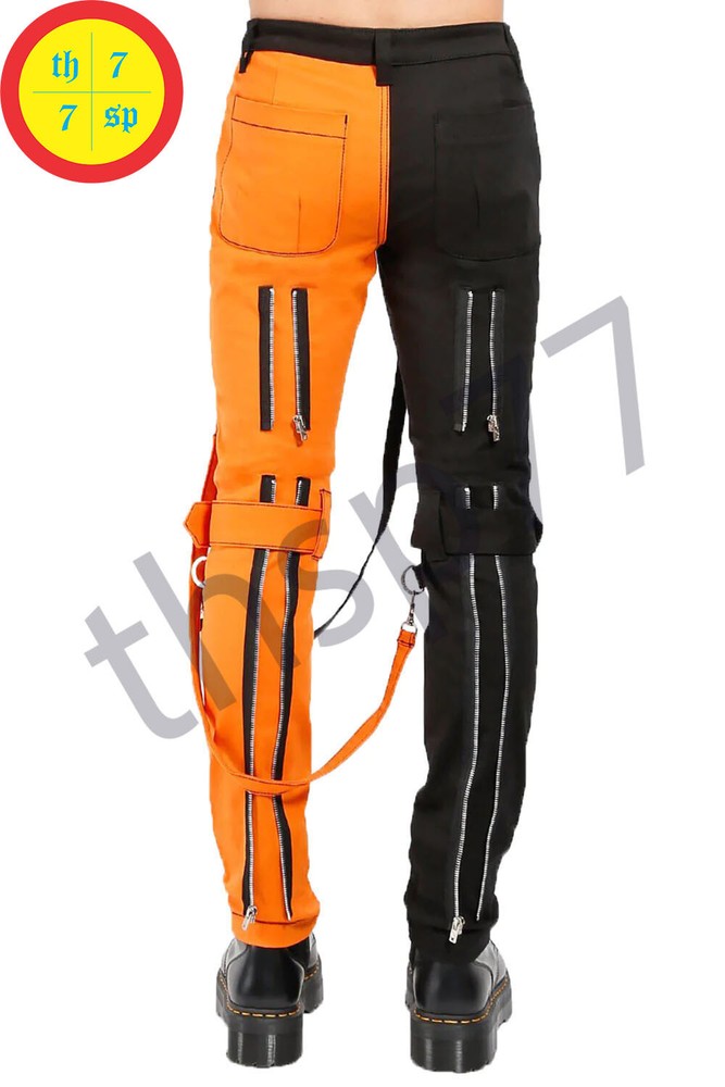 Men Gothic Split Leg Bondage Pant Orange Black Trouser Punk Rock EMO Tripp Pants Feedback We sincerely hope that our valued customers will leave positive feedback upon complete satisfaction regarding the product. Leaving negative or natural feedback would not fill the purpose, so please cooperate with us before opening the case or leave feedback to us, and we will be happy to make you satisfied. Valuable customers are requested to contact us first, before passing any negative feedback. Shipment It is informed that our shipment & delivery cycle will take 7-10 days. In case of the non-availability of your required size in our stock, it will be shipped from our overseas factory which is Pakistan based. Customs charges if applicable will be paid by the buyer. Return & Exchange In order to return the Product or any change in your mind, simply return the said product within 14 days unused, undamaged, and in the original packing. After receiving the product we will issue a full refund to the customer except for return postage charges. (If your claimed product has arrived in damaged condition, in that case, we will send you a return label, once we receive the item we will either send you a replacement or issue a full refund) Specifications: Multiple cargo pockets Detachable Bondage Straps/ Chains 100% Cotton Very Comfortable to Wear! Prime Quality Handmade Attractive Design and Colors Quick Delivery Stock Available