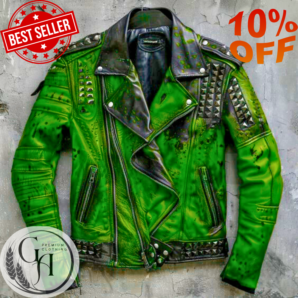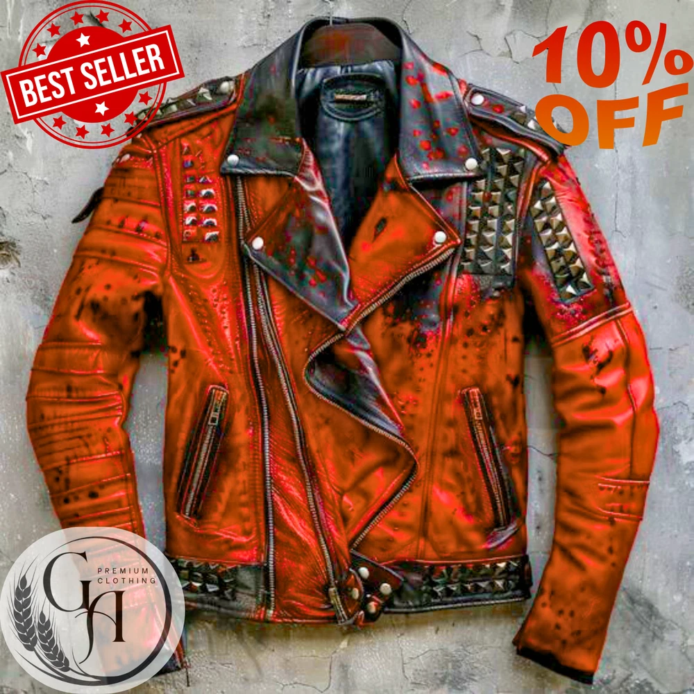 This Men's Gothic Rock Metal Spiked Studded Leather Jacket is a custom handmade piece perfect for those looking to make a statement with their outerwear. Made from high-quality leather with accents of metal studs and spikes, this jacket exudes a biker style with a touch of punk rock flair. Ideal for winter, fall, and spring, it features a full zip closure, belted waist, and a spread collar for added edgy appeal. Whether you're traveling, partying, or simply looking for a bold statement piece, this jacket is sure to turn heads and showcase your unique style. Elevate your style with this bold and edgy **Men's Studded Leather Jacket**, designed for those who want to make a statement. Crafted from premium-quality genuine leather, this jacket offers a perfect blend of durability, comfort, and timeless appeal. The sleek, tailored fit ensures a sharp silhouette, while the studded detailing adds a rebellious touch to your look. ** Men’s asymmetrical studded leather jacket key features :** **Material:** Made from 100% genuine leather for a luxurious feel and long-lasting wear. **Design:** Edgy studded accents on the shoulders, collar, and sleeves for a rock-inspired aesthetic. **Fit:** Slim or regular fit options available, designed to flatter every body type. **Closure:** Full-front zipper closure with snap-button placket for added security. **Pockets:** Multiple functional pockets, including two front hand pockets and an inner pocket for convenience. **Collar:** Stand-up collar with snap-button closure for a sleek, modern look. **Lining:** Soft inner lining for added comfort and warmth. **Versatility:** Perfect for casual outings, bike rides, concerts, or adding a rugged edge to your everyday wardrobe. **Why Choose This Jacket?** This studded leather jacket is more than just outerwear—it's a symbol of confidence and individuality. Whether you're heading to a night out or simply want to upgrade your streetwear game, this jacket is the ultimate choice for men who aren't afraid to stand out. Step up your fashion game and embrace the bold, rebellious spirit with this must-have studded leather jacket. Perfect for any season, it’s a timeless piece that will keep you looking sharp and stylish for years to come. **Available Sizes:** S, M, L, XL, XXL-->6XL --- to any size **Colors:** Black, Brown, Dark Blue and Many more Manufacturing & Shipping: ⏳ Production Time: 7-10 Days (Expertly Handcrafted) 🚀 Shipping: Express Courier Worldwide 📌 Why Choose Our Studded Leather Jacket? ✅ High-Quality Leather & Durable Metal Hardware ✅ Handcrafted for a Unique & Stylish Look ✅ Designed for Comfort, Style & Long-Lasting Wear 📢 Note: Due to lighting and screen resolutions, actual colors may slightly vary. However, we ensure the closest match to the original. 💬 Have a question? Need a custom size? Feel free to message us!