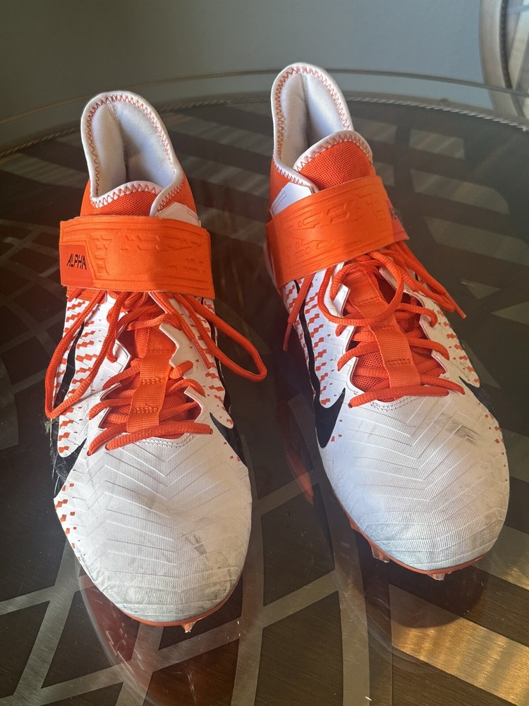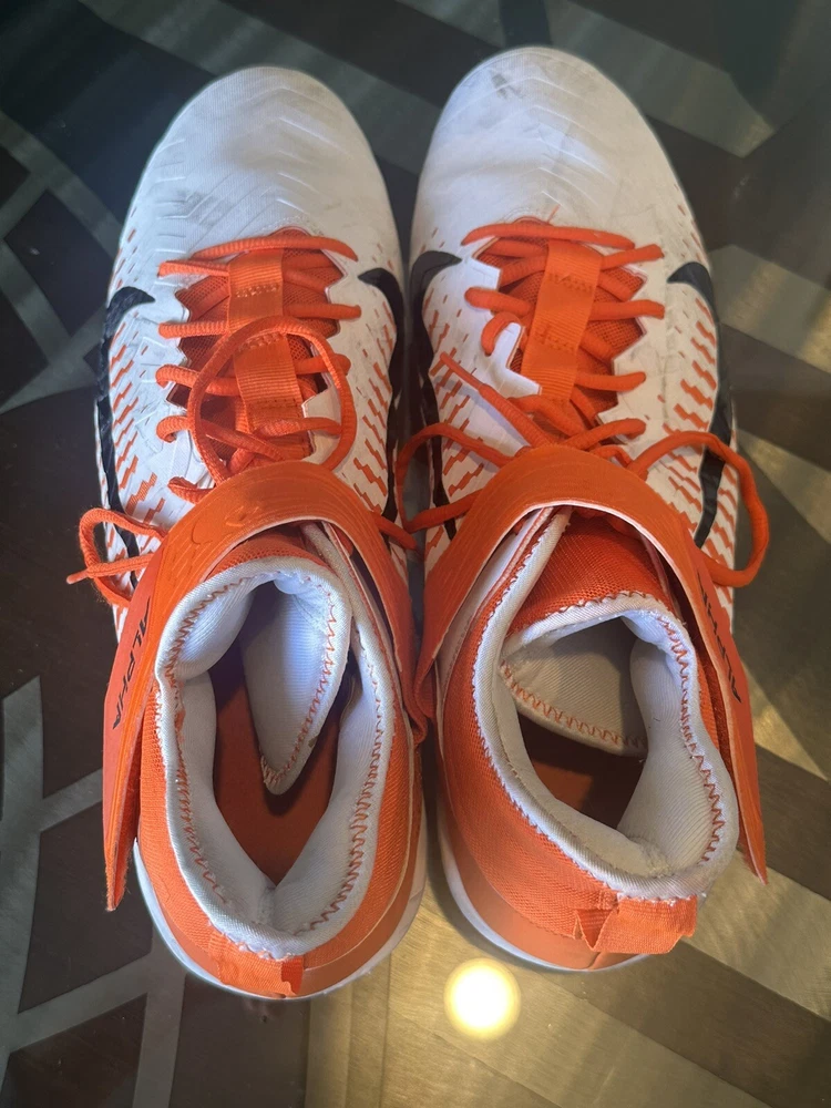 Men's Nike Alpha Menace Pro 2 Mid Football Cleats Orange BV3945-103 Size 14. Condition is Pre-owned. Shipped with USPS Ground Advantage.