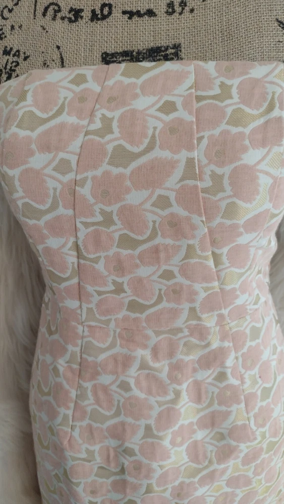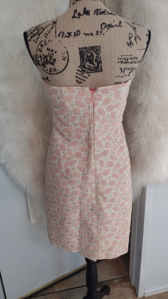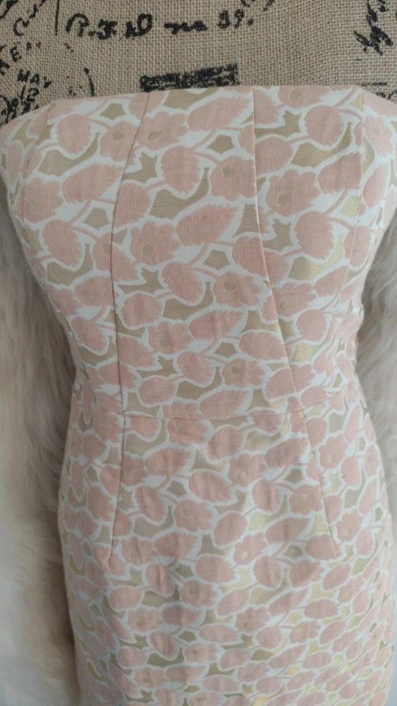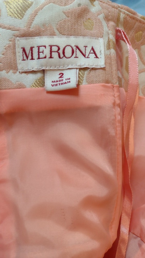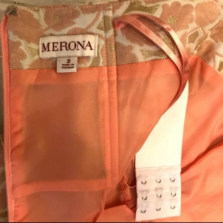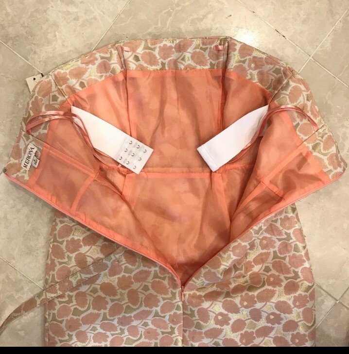 Merona, Orange & Pink, Floral Spring Dress, Size 2.. Shipped with USPS First Class. Gorgeous and classic jacquard strapless dress with internal strap support, fully lined, boning. Belt not included. Chest 18"-18" waist 14"-15" length 32"
