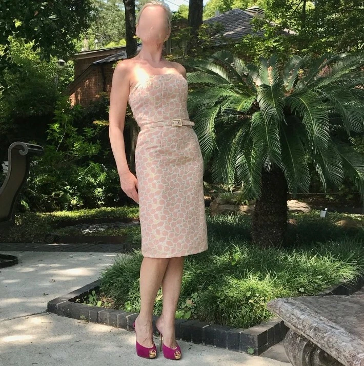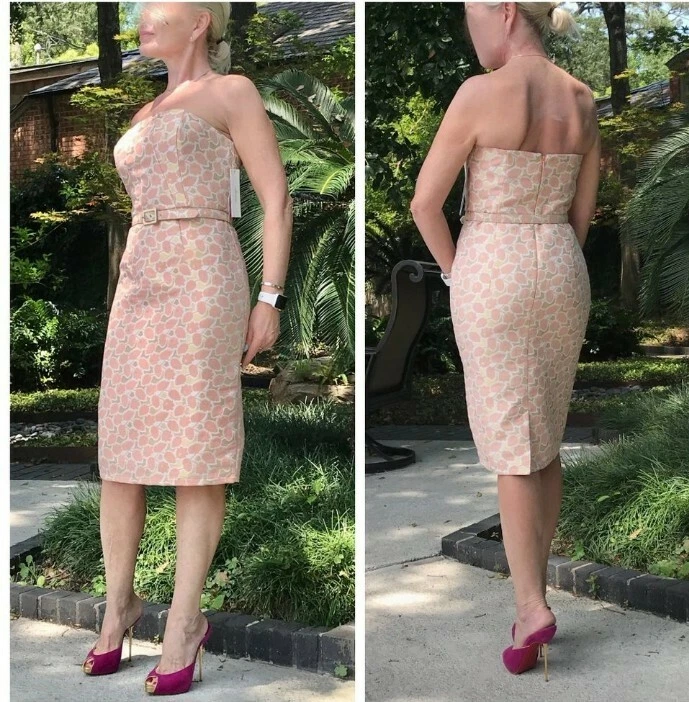 Merona, Orange & Pink, Floral Spring Dress, Size 2.. Shipped with USPS First Class. Gorgeous and classic jacquard strapless dress with internal strap support, fully lined, boning. Belt not included. C...