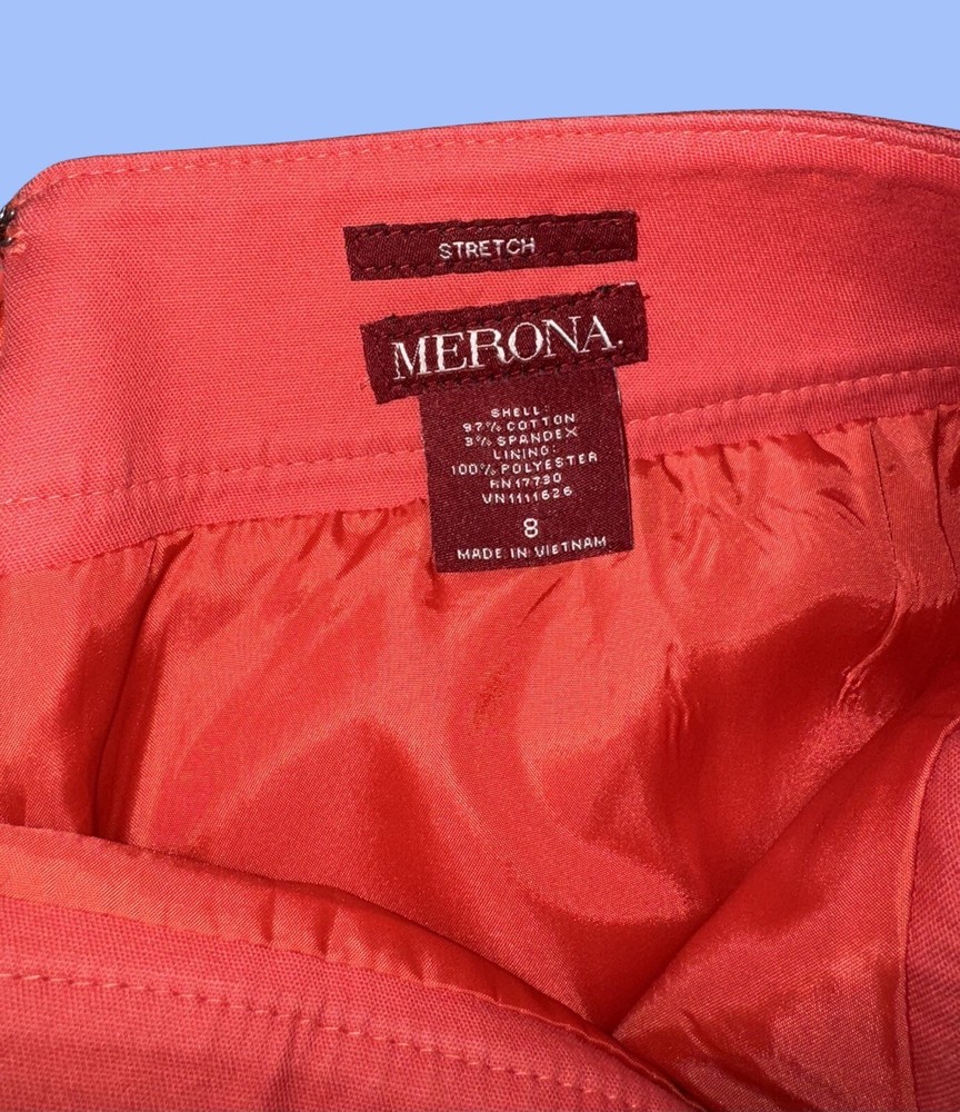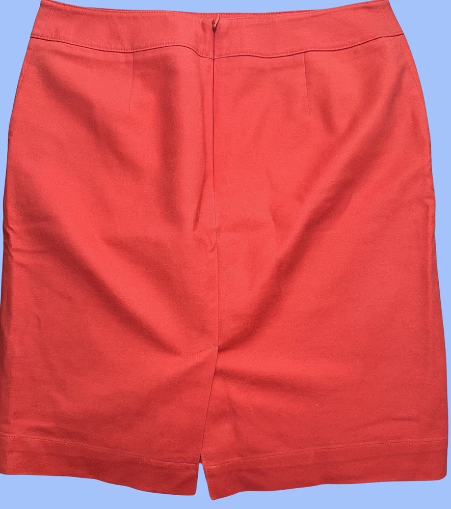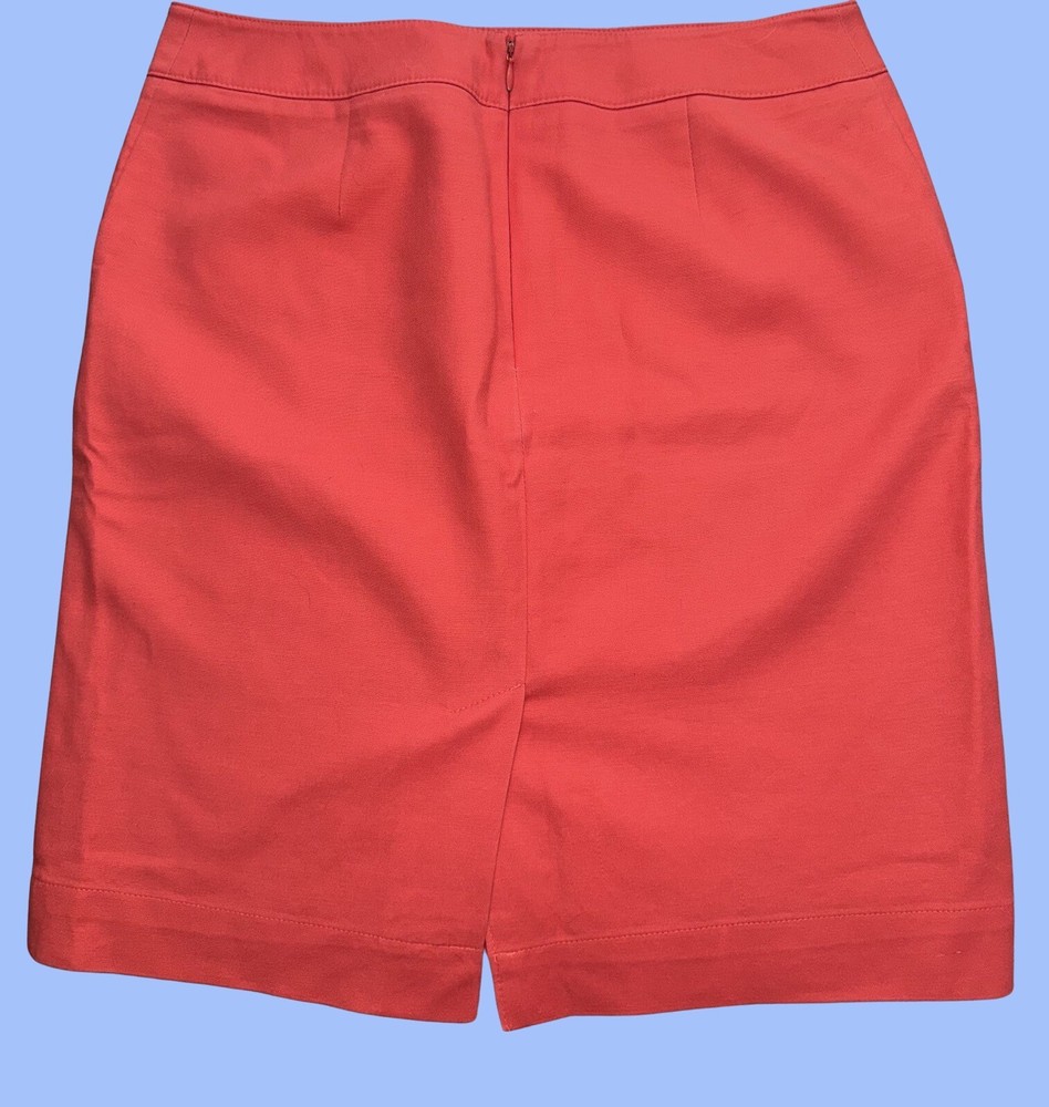 Step out in style with this beautiful modern yet classic Merona stretch pencil skirt in a vibrant coral color. This skirt is perfect for any occasion, be it a formal event, a normal workday or a casual outing. The skirt features a flattering straight and pencil style with pleated accents, a super silky liner and a zipper closure with function, deeper pockets. There are no flaws at all. Skirt is in new condition no ripped or loose threads. The zipper is 100% functional. There are no stains spots pilling or anything of the such. I am also able to ship for free with a tracking number if you would like to purchase on Venmo or PayPal!! I have over 500 other listings on Facebook that I will also ship If purchased on Venmo or PayPal!!!! https://www.facebook.com/marketplace/profile/100028480987810/?ref=permalink&mibextid=6ojiHh