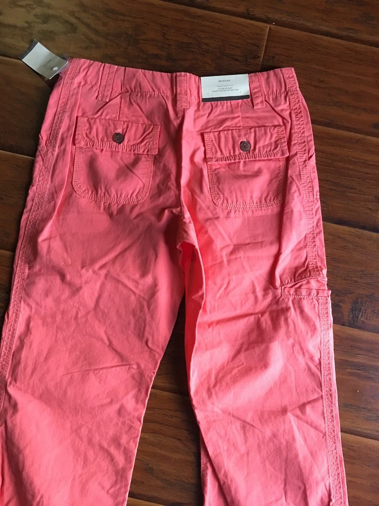 Merona Target Contour Fit - Sits Below Waist Shaped Pants Size 8 Clear Mango Material: 100% Cotton Tag Size:8 Approximate Measurements Front Laying Flat(in inches): 1 inch = 2.54 cm WAIST ACROSS:16" RISE:10" INSEAM:31" LEG OPENING:9.25" Condition: This item is New with tags Condition! Item is free and clear of any Noticeable , Rips , Tears or Pulls of Fabric.See pictures. This item has been preserved in a smoke-free and pet-free environment Authenticity: All items are Guarantee AUTHENTIC. Payment: We do ask immediately payment due to a high volume of Unpaid case. Pay Pal is the only accepted form of payment. Payment must be received within 2 days of the close of auction and immediately when using the BUY IT NOW. If payment isn't received within 2 days, the auction will be revoked and a Non-Paying Bidder alert will be filed. Please remember that the quicker you pay, the quicker we can send you your item! Shipping: All items are shipped within 1 business day of purchase and often shipped on date of purchase. All orders are shipped via USPS. Shipping rates are based on your location and come from zip code 91773. All US buyers will receive a tracking number upon shipment. Import duties, taxes and charges are not included in the item price or shipping charges. These charges are the buyer's responsibility. Please check with your country's customs office to determine what these additional costs will be prior to bidding/buying Return: We do not accept returns. As, we do our best to point out all blemishes that are visible on pre-owned items, but occasionally make mistakes. If we do, due to a listing error, isn’t as described in the listing, We will happily offer a full refund plus return shipping. If you would like to return an item for any other reason, please contact us within three days of receipt of the item to inform us of your intent and we will work together to obtain a positive outcome. NOTE: If a return is granted, please keep in mind that the buyer will pay the return shipping and if purchase with free shipping a refund minus the shipping cost incurred by the seller will be issued . All refunds will be made through PayPal within 3 days of receipt. Returned items must be in the same condition as when received (tags still attached if applicable, etc). All refunds will be made through PayPal within 3 days of receipt. Term of Sale : The majority of our items are pre-worn items and, they may have some signs of wear. All Clothing Items may fit differently depending on Brand, Fit. We strongly urge our customer's to check measurements first to guarantee proper fitting. Items are kept in a Smoke- Free and Pet- Free environment but keep in mind that many items are originally from the homes of others and may have faint odors. If you have sensitivities to certain odors feel free to email us regarding information on specific items. All monitors display colors differently but we try our best to ensure that the photos and text relay the coloration of the item as thoroughly as possible . Please review the listing and photo(s) carefully before bidding Feedback: Your feedback is CRITICAL to our success on EBAY. Please do not hesitate to contact us for any reason. If you are not satisfied, Allow us to work out issues prior to leaving negative feedback or opening a case with ebay.