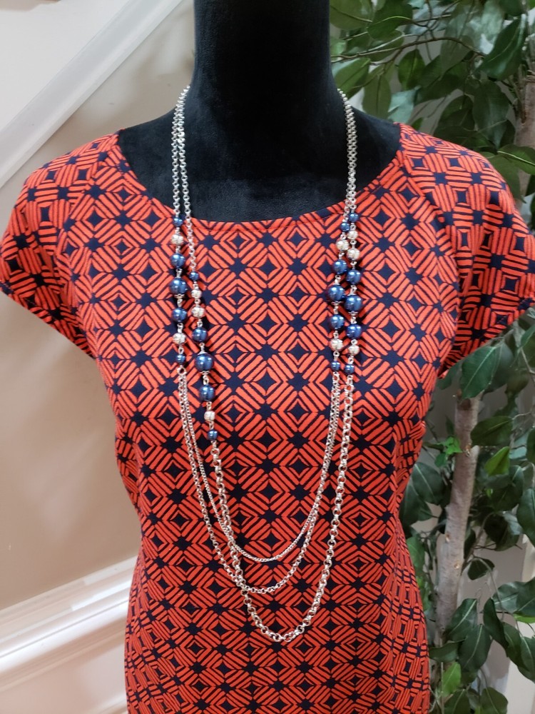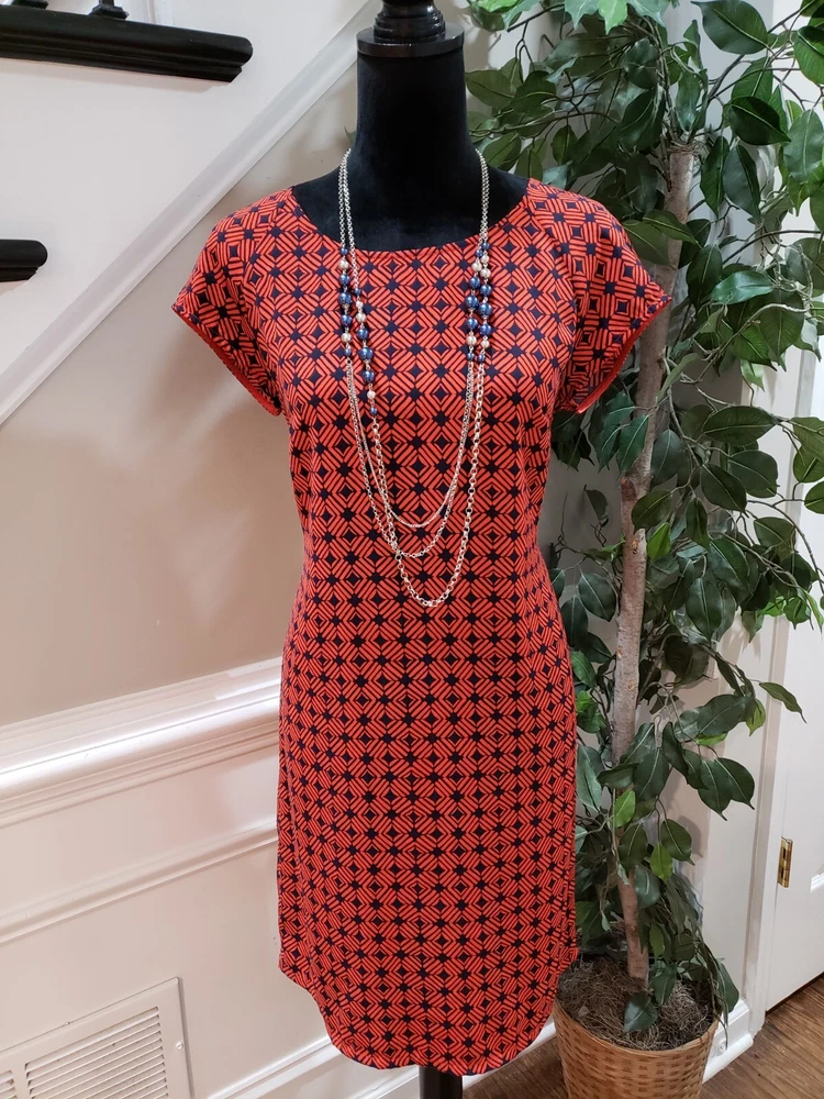 Merona Women Orange & Blue Polyester Round Neck Short Sleeve Knee Length Dress M Description Merona Women Orange & Blue Polyester Round Neck Short Sleeve Knee Length Dress M. Product Detail • Brand : Merona • Size: M • Color : Orange & Blue • Material: 100% Polyester • Type: Knee Length Dress • Department: Women's • Neck Style: Round Neck • Sleeve Length: Short Sleeve Please message me if you have any questions. I stand by all of my items before and after purchase. Please see my feedback.