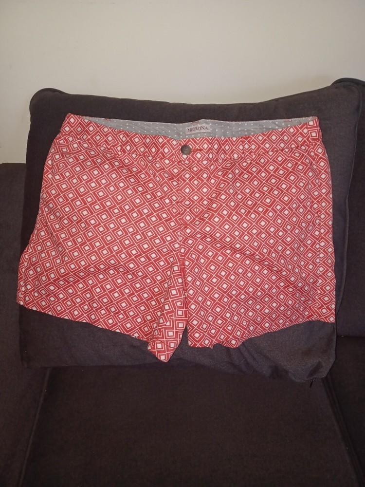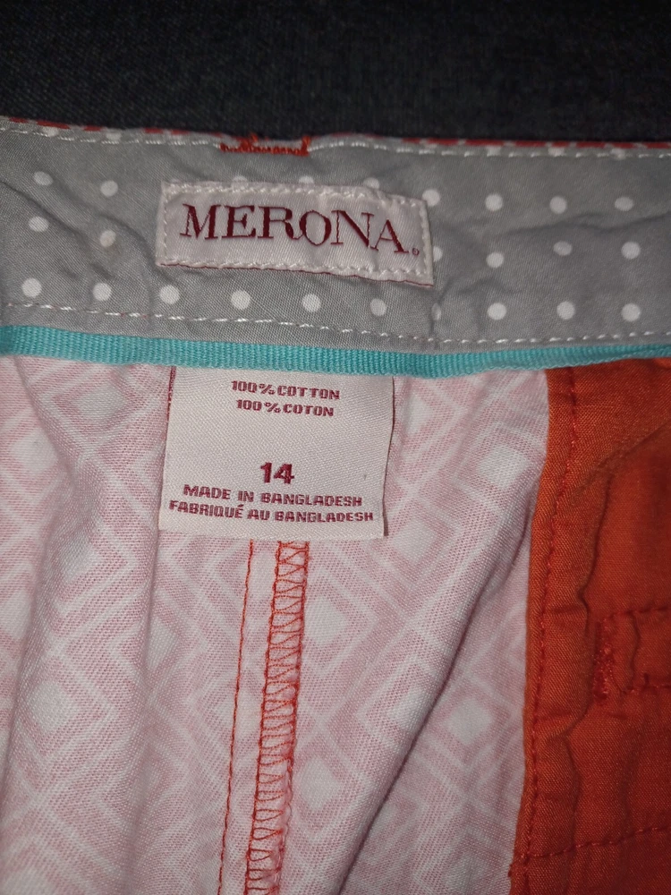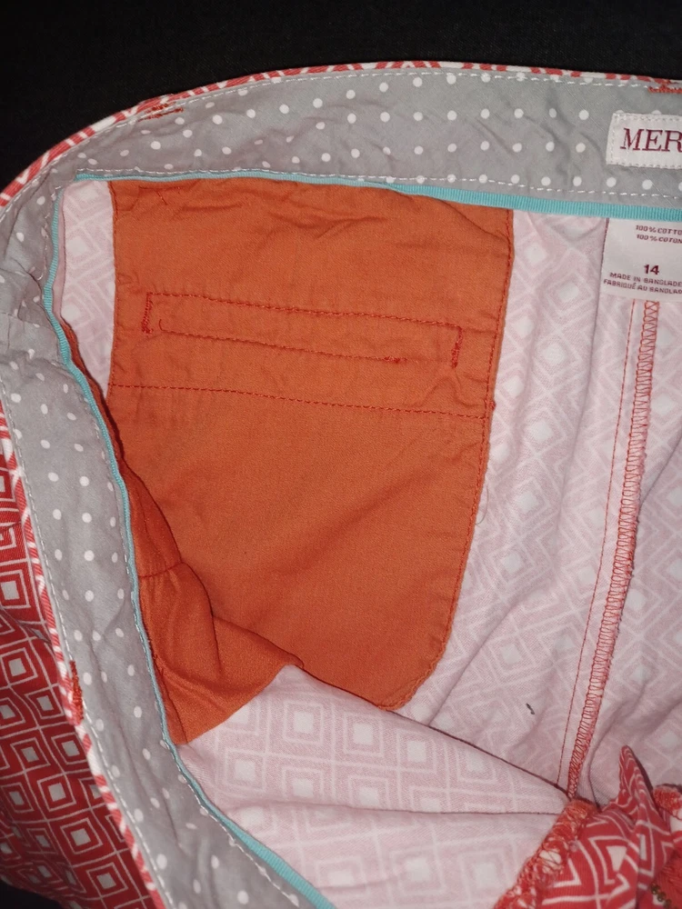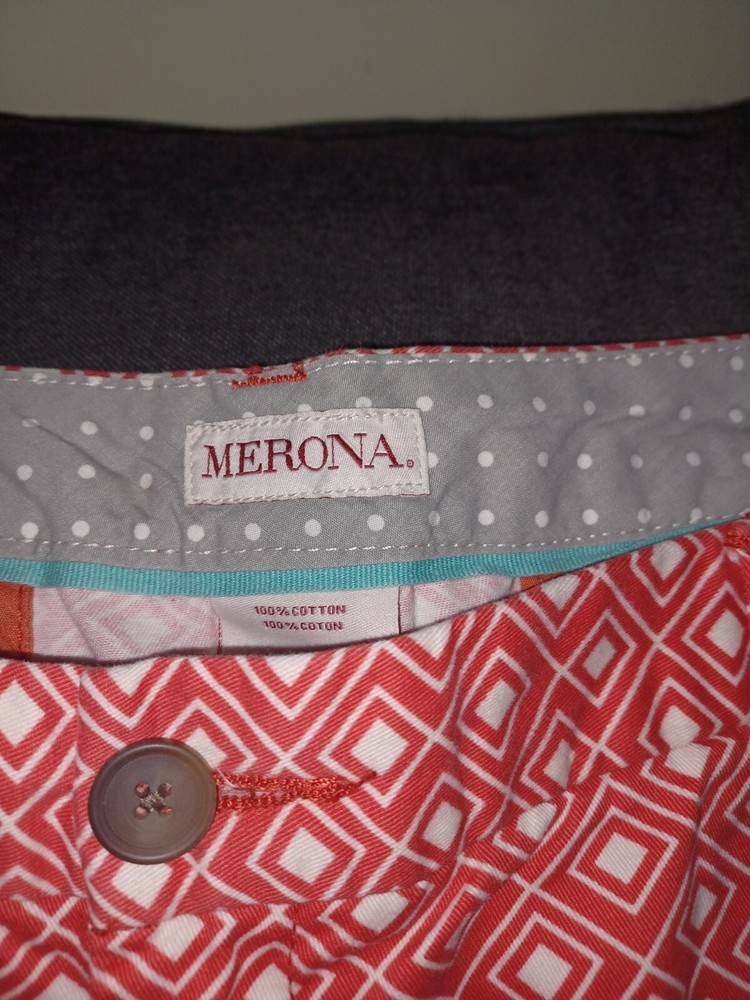Elevate your summer wardrobe with these stylish Merona Women's Shorts in size 12. The orange and white geometric pattern adds a pop of color to your outfit, while the classic fit and mid-rise design provide comfort and versatility. Perfect for any occasion, whether it's a casual day out or a party in the city, these shorts feature a zip closure and slash pockets for added convenience. The lightweight and breathable fabric make them easy to care for and stretchy to fit your body. With a 3-inch inseam and flat front design, these shorts are a modern twist on a classic chino style. Add them to your collection today! B14