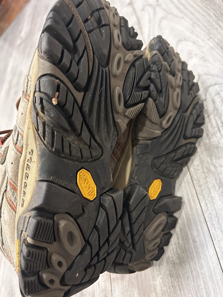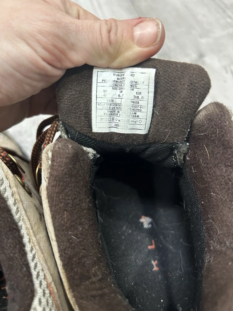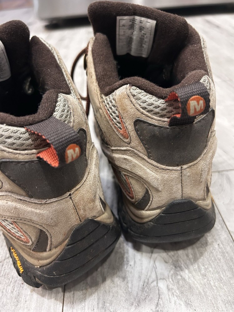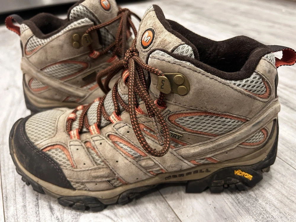 Merrell Moab 2 Waterproof Mid Hiking Shoes Suede Brown Orange Womens Size 8 in great preowned condition....