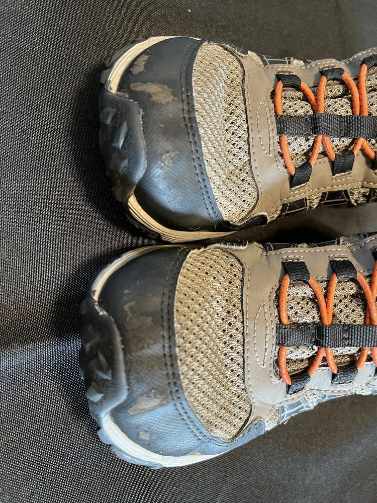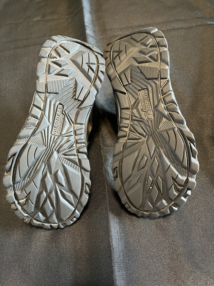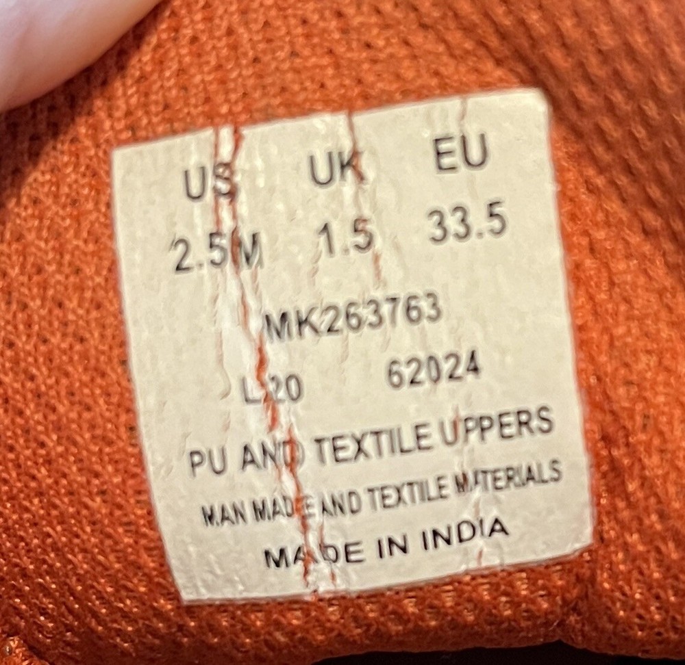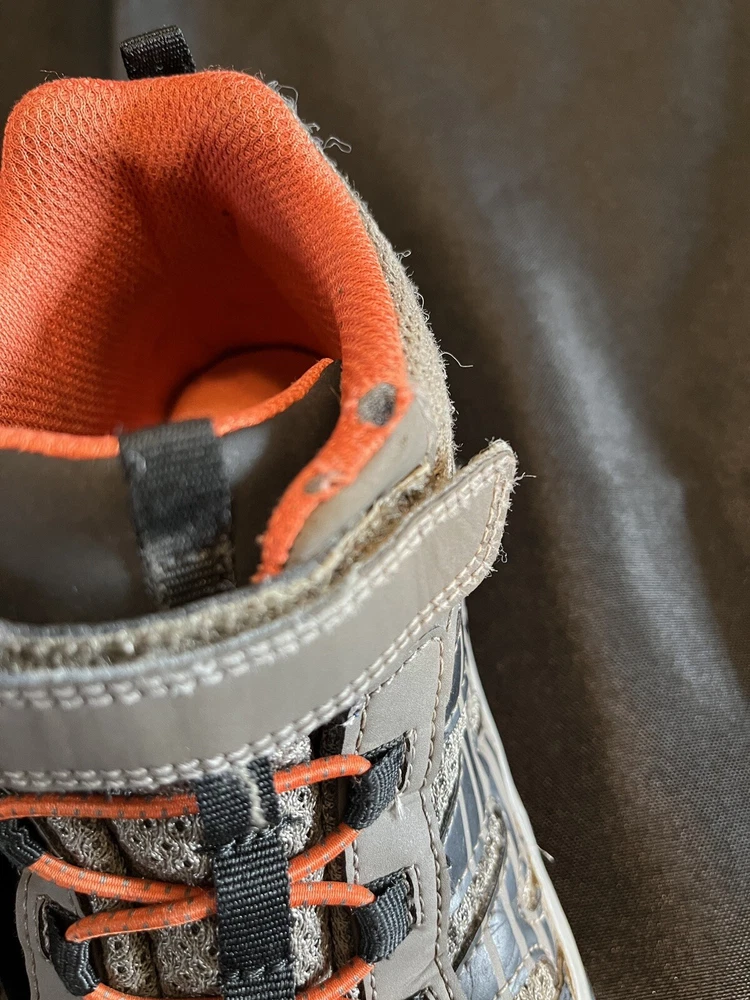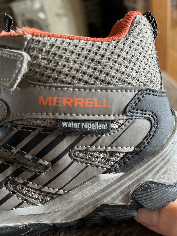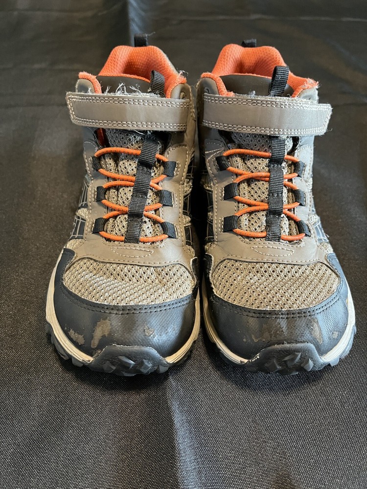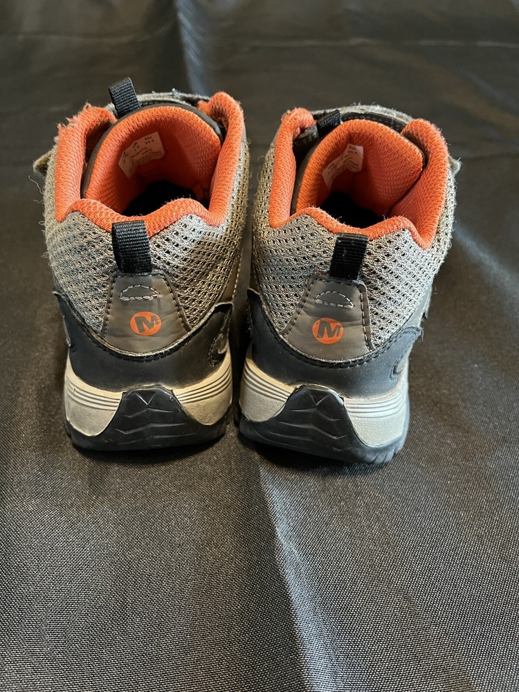 Merrell Unisex Children's Moab Voyager Mid Hiking Boot Brown/orange Size 2.5M. Very good used condition with lots of life left in them! The tread is in perfect condition Flaws are shown in the pictures, including small tear in the fabric around the top. Also pictured, the toe portion shows some wear. Otherwise in great condition. Any questions, please ask! Thanks for looking!
