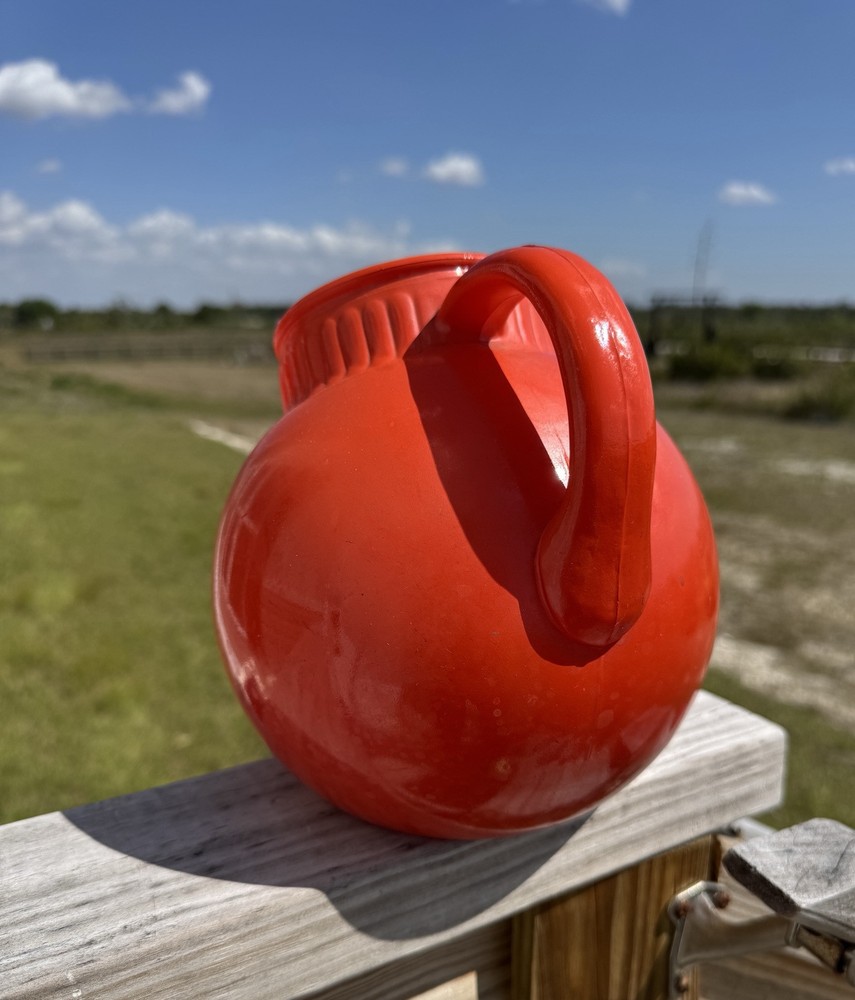 Design: A round "ball" shape with a tilted neck and ice lip for easy pouring Material: Glass Function: Designed for serving beverages Brand: Manufactured by Anchor Hocking, a well-known glass company since 1905 * Does have normal wear since it is a vintage item.