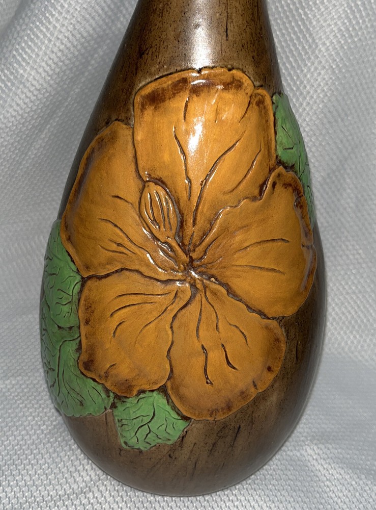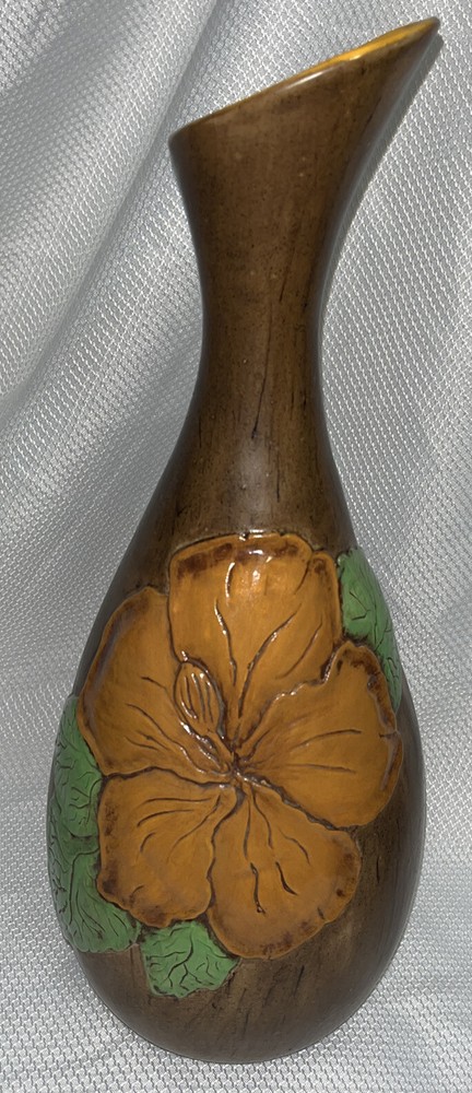 Mid Cent Flower Vase Orange Brown Hawaii 15”.