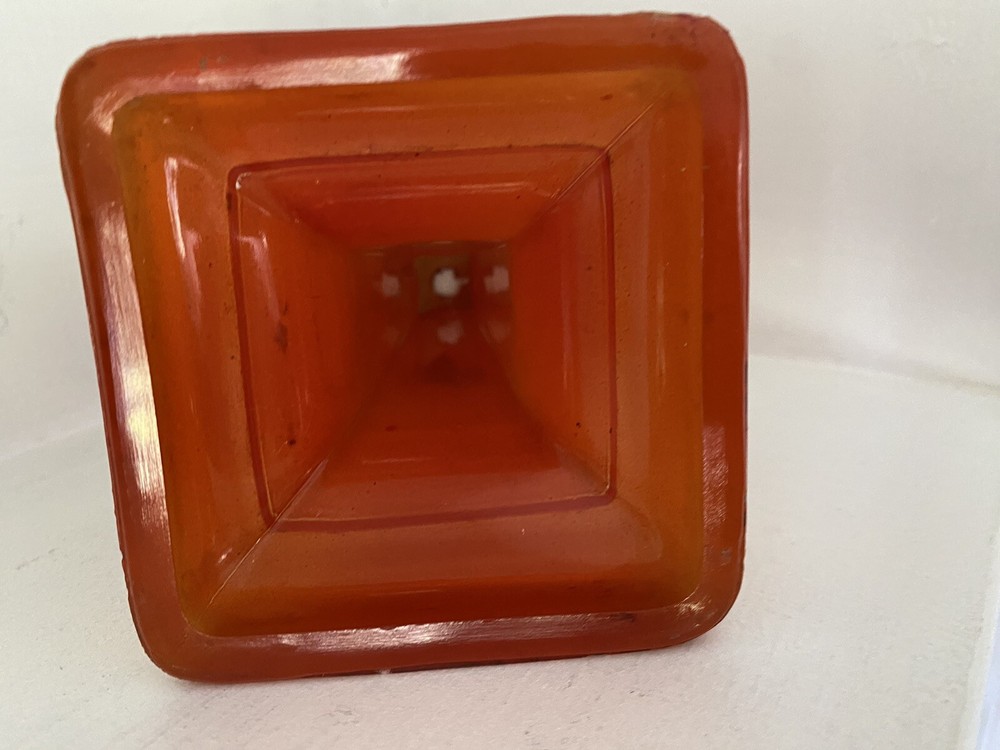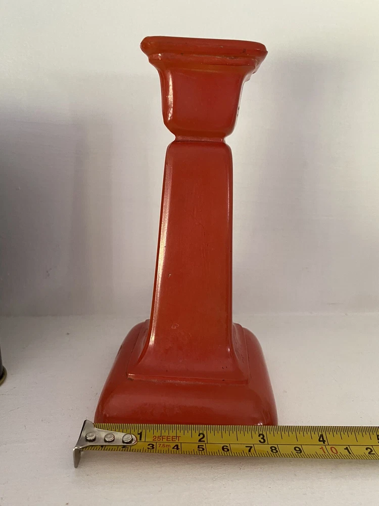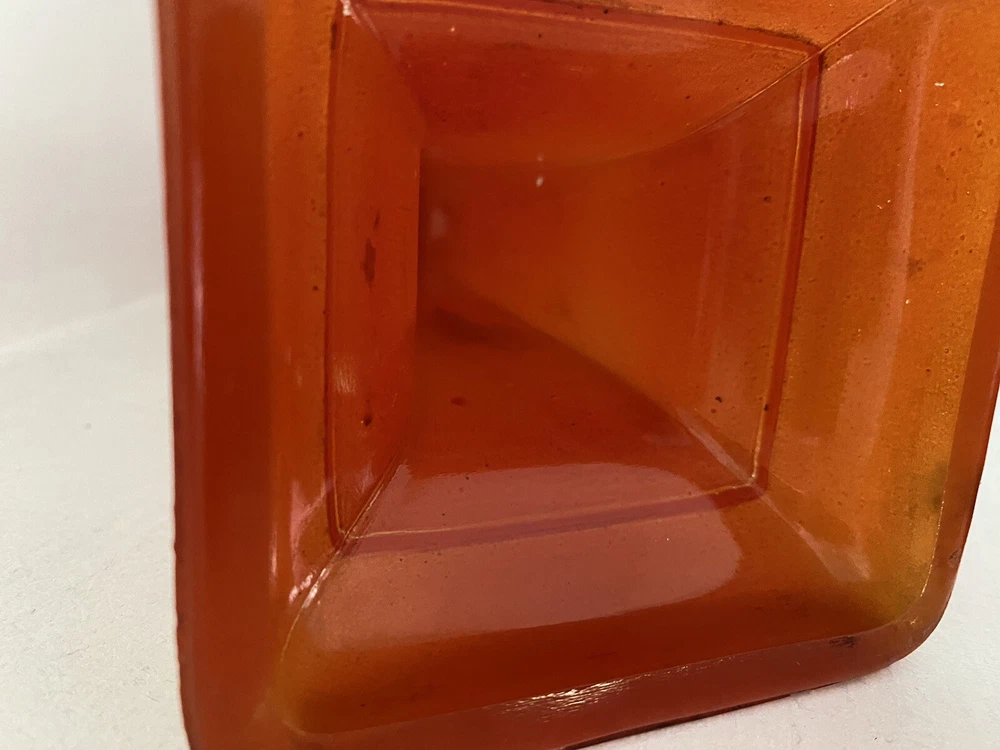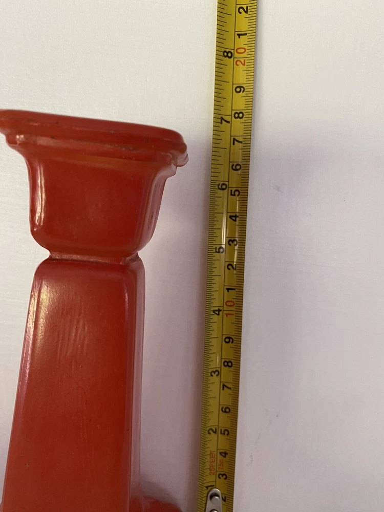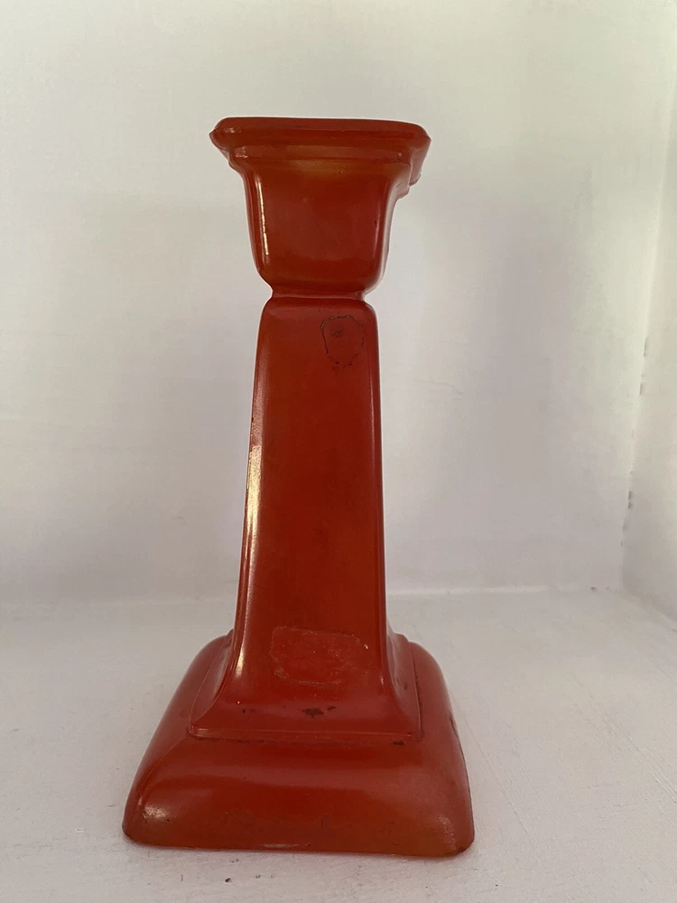 Imagine the possibilties for Halloween! Amazing MCM orange glass Candlestick as shown in photos. No labels. Measures approx. 6 3/4" to the top of the rim. Not sure of the origin since there are no labels. We see similar pieces listed as Czech - you decide. There are some small scratches in the glass and bubbles typical of this glass. Displays great. S elling as found at a local Es tate. No damage. Please inspect the photos -- they tell the story. See photos. Send questions prior to purchase. Shipping by USPS or FedEx. Note: Happy to combine items to save on shipping. Will refund shipping overages.