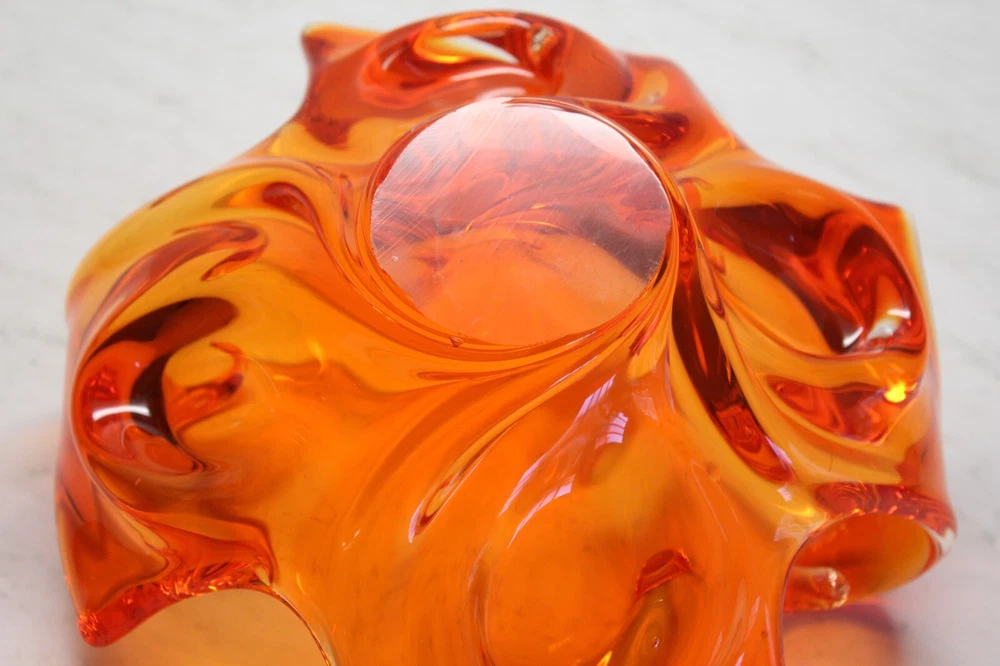 Mid Century Abstract Art Glass Bowl - Art Glass - Orange Bowl - 10 x 6 in tall