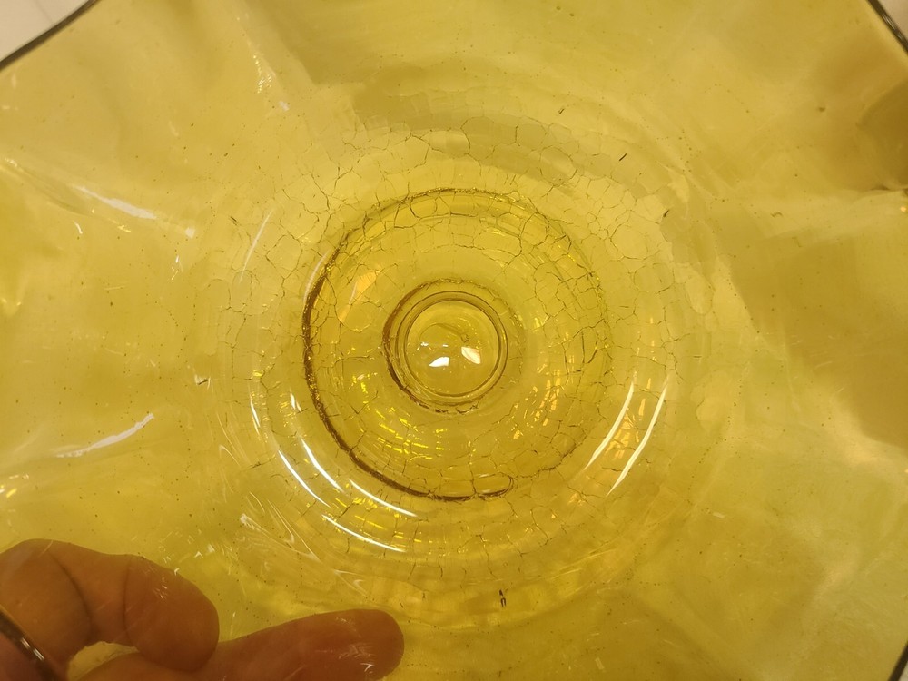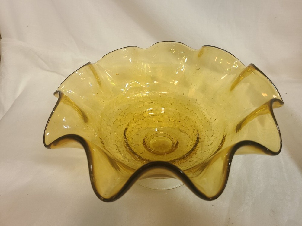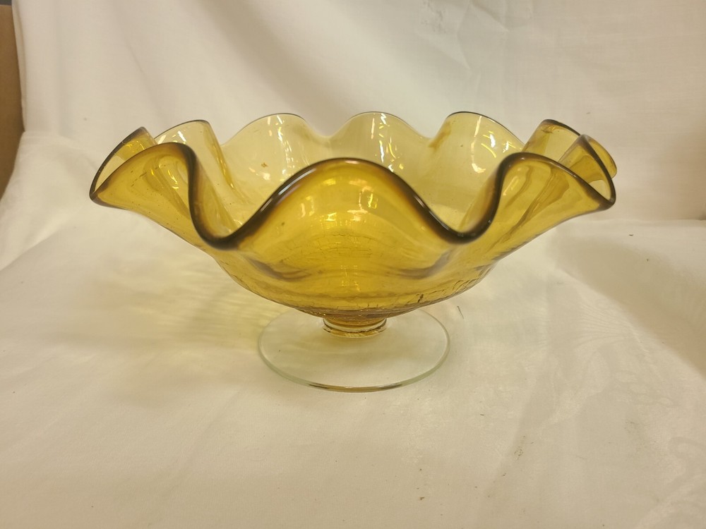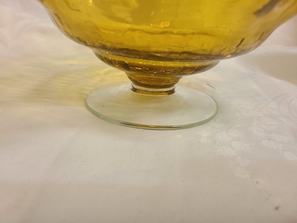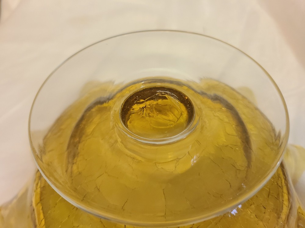 This beautiful Amber Art Glass Pedestal Compote Bowl is perfect for any occasion. The round shape and solid pattern make it a modern addition to your dinnerware collection. The crackle bottom adds an interesting touch to the 10 inch diameter and 5 inch height bowl. Made of high-quality glass material, this compote bowl is suitable for all kinds of food and kitchen themes.