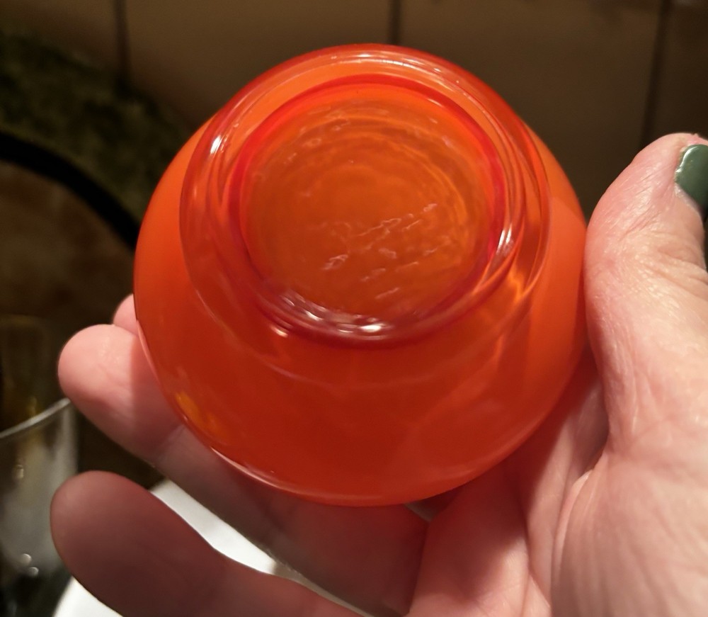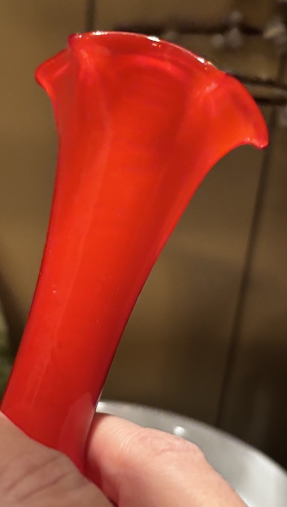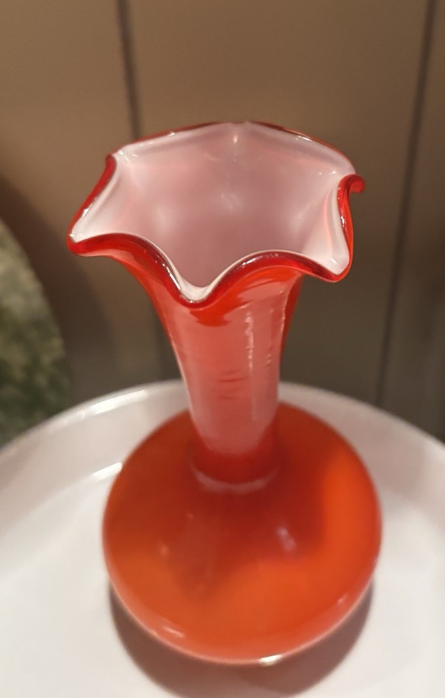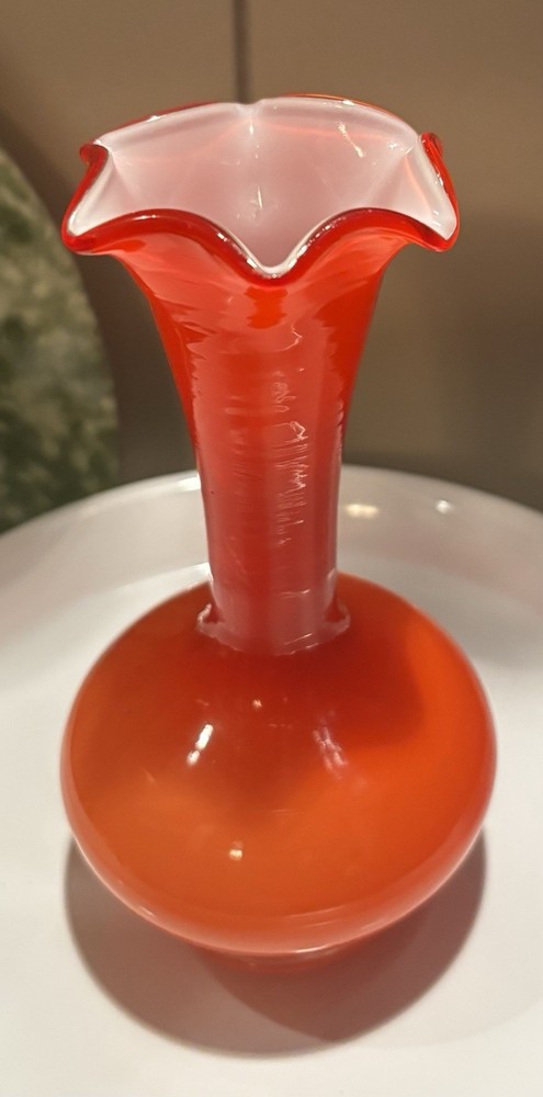 Absolutely stunning vintage vase! The hand-blown orange glass catches the light beautifully, and the ruffled top adds such a unique, artistic touch. Perfect size for a pop of color on a shelf or table—definitely a conversation starter. The craftsmanship is incredible, and it feels like a true mid-century treasure. Love how it elevates my decor!