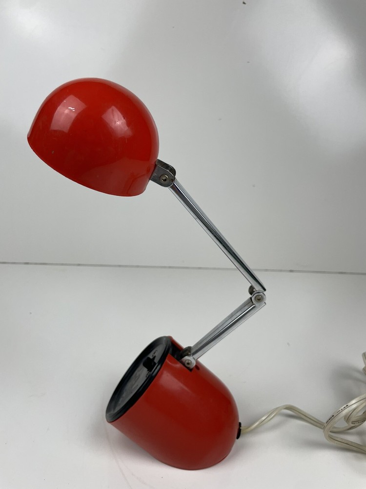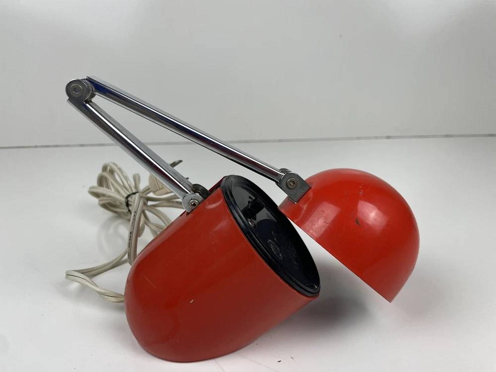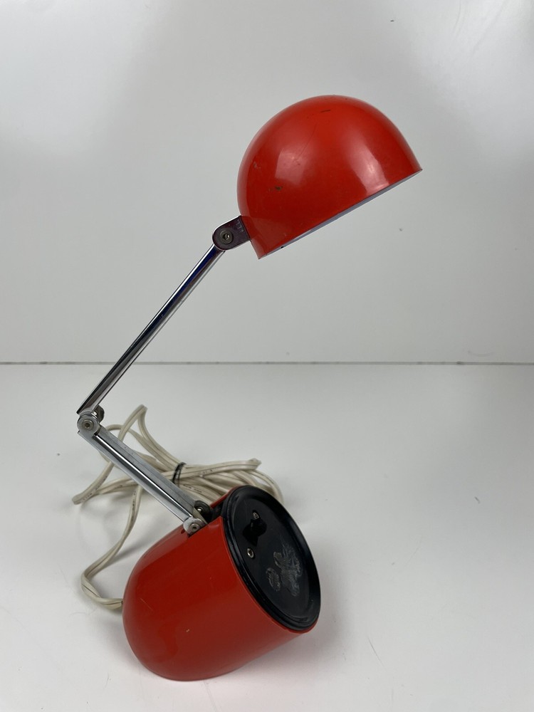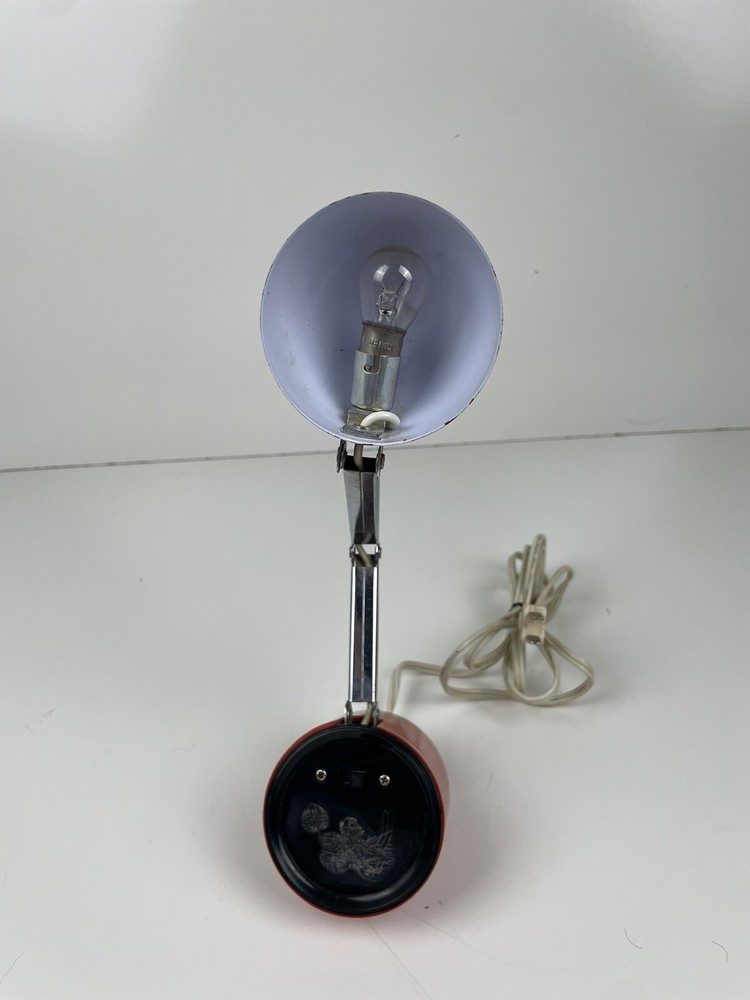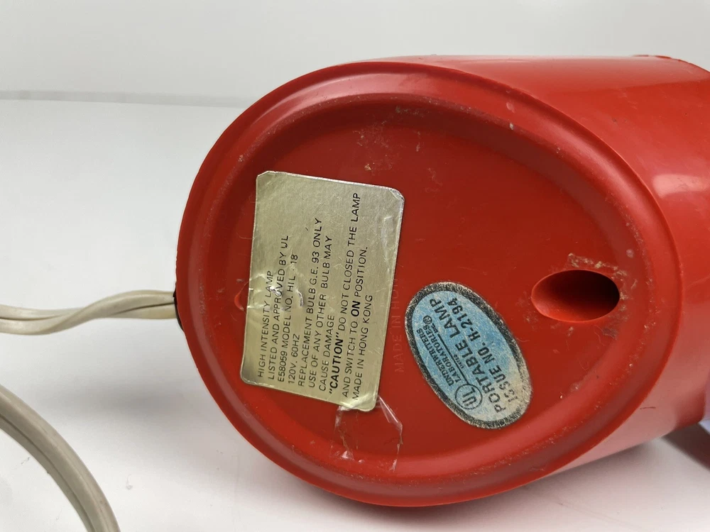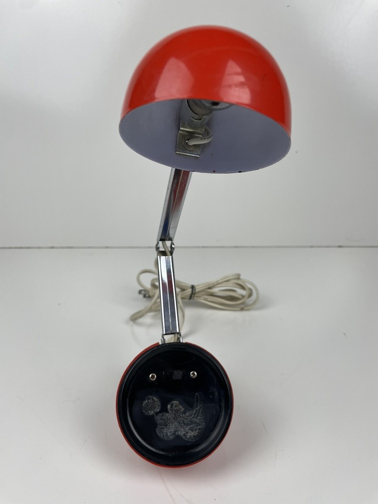 Missing front metal on dock This Mid Century desk lamp is a must-have for any collector or enthusiast. The bright orange-red color adds a pop of color to any room, while the folding design makes it easy to store and transport. The lamp features a sturdy cord in a matching orange color and is branded as Prestigeline. Measuring at a convenient size, this desk lamp is perfect for any work or study space. The type of lamp is a desk lamp and the light color is red and orange. The lamp's brand is Century. Don't miss out on the opportunity to add this unique and stylish lamp to your collection.
