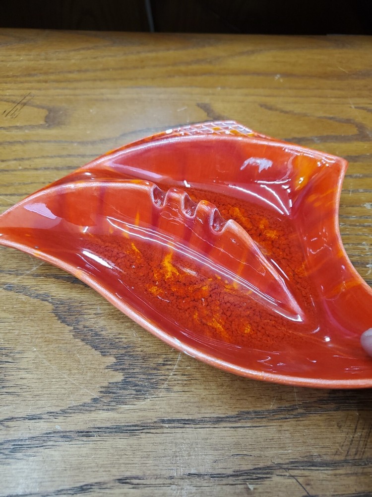 This vintage ceramic ashtray features a vibrant red-orange color with a unique hand-painted lava glaze. Made from high-quality pottery, this ashtray is perfect for collectors of decorative items. The age of this piece is unknown, adding to its mysterious charm. The brand, Ceramic Ashtray, is well-known for producing high-quality ceramics and porcelain items. This ashtray is a perfect addition to any decor with its colorful design and unique style. The features include a decorative design that makes it stand out from other ashtrays. This item is an original piece, perfect for collectors of vintage and decorative items. If there is any issue with the item upon arrival, please let me know before leaving feedback as I strive for great customer service. Message me for any questions. From a pet and smoke free home. I can offer discounted combined shipping on multi-quantity orders! Thank you for visiting my Ebay store.