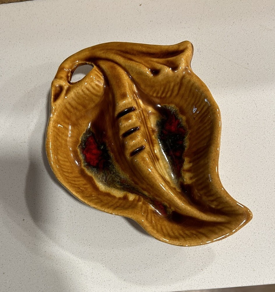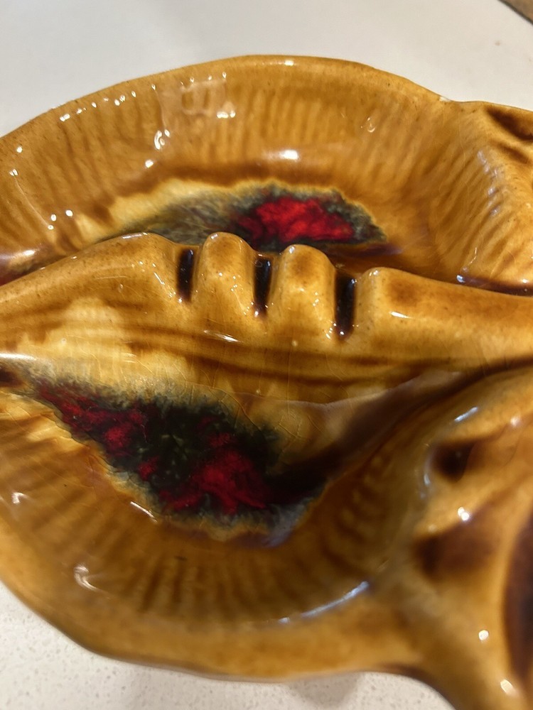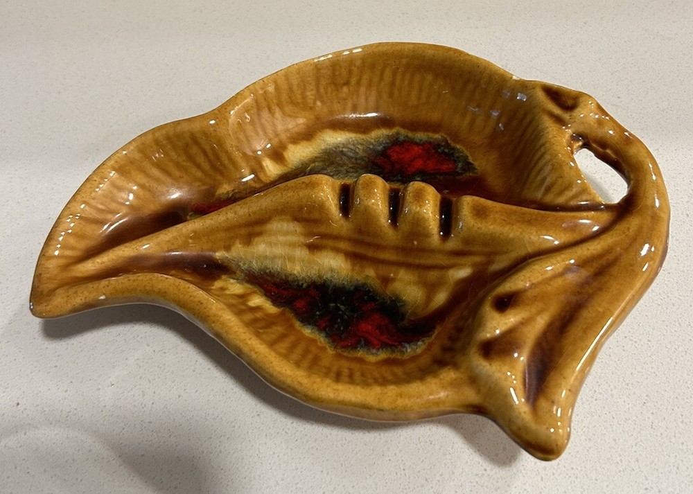 This ashtray is a stunning mid-century piece with a gorgeous gold swirl design—perfect for adding vintage charm to any space. The drip pottery style gives it a unique, artsy vibe, and the quality feels solid and well-made. A must-have for collectors or anyone who loves retro decor!