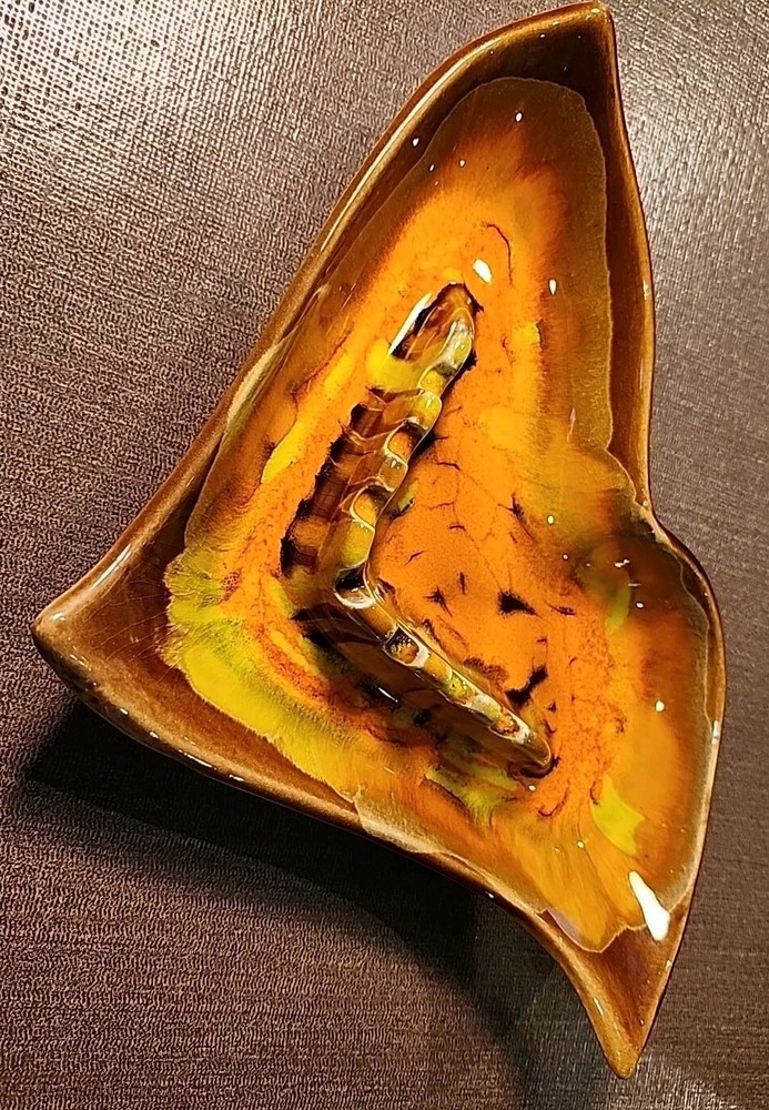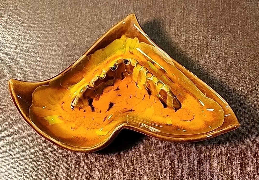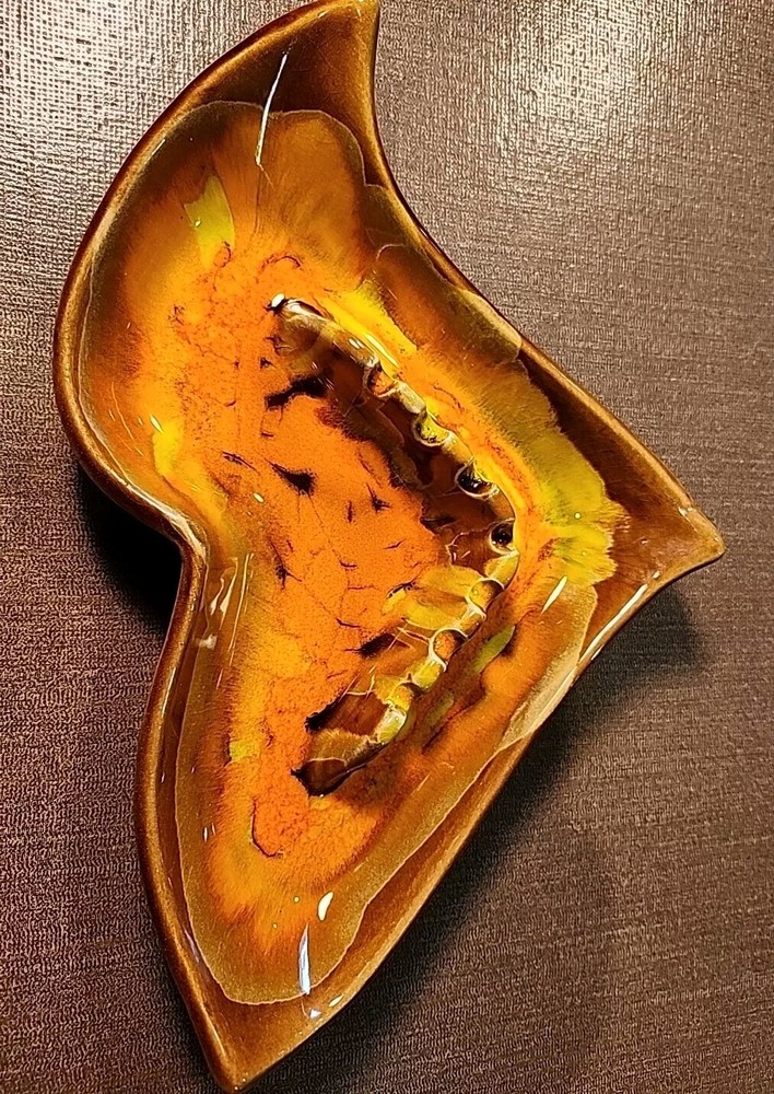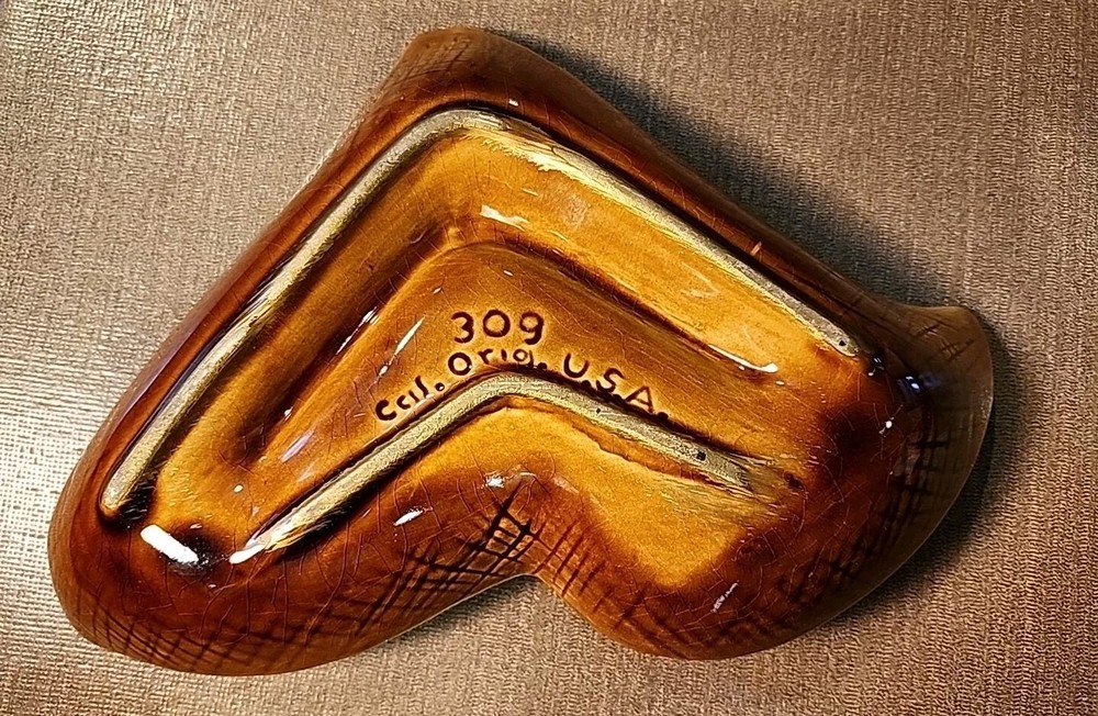 No cracks or chips. Has a small 1/4" rough area felt on Brown rim but can't see anything. Measues approx. 9 3/4" by 7"....