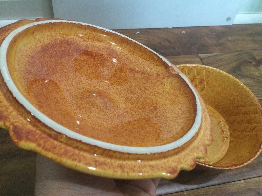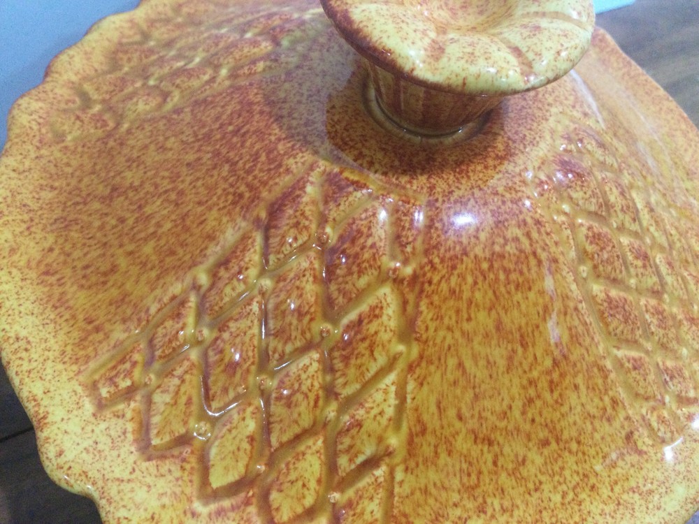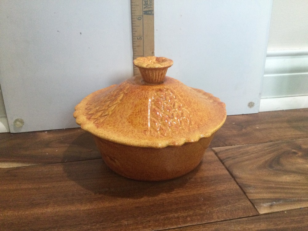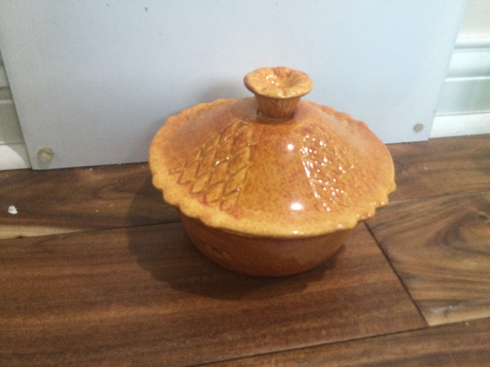 Mid Century California Pottery 257 Brown orange Drip Glaze Dip LIDDED BOWL WAS PART OF A Veggie Tray Set A bright and gorgeous vintage California Originals Pottery piece perfect for veggies or Hors D'oeuvres. This center bowl measures 6 1/4" wide (without lid) , it is a little wider due to the lid and it ios 4'' tall with the lid. Condition: Used in excellent condition (each item is thoroughly inspected for quality and is guaranteed to be in excellent condition). No defects, cracks, chips, cutlery marks, crazing or repair. WHAT YOU SEE IS WHAT YOU GET. Please SEE ALL PICTURES and feel free to ASK QUESTIONS or request additional info BEFORE BUYING. We ship the same or next day the payment is received, excluding Sunday's and holidays. We can combine shipping when possible. Color: Please note that, although every effort is made to photograph the item accurately and describe the products in detail, we cannot guarantee to give the exact color name and every computer monitor will accurately depict the actual color of the merchandise. Please contact us with any questions about the color any item before purchasing. sellersnote: box160, shelf23