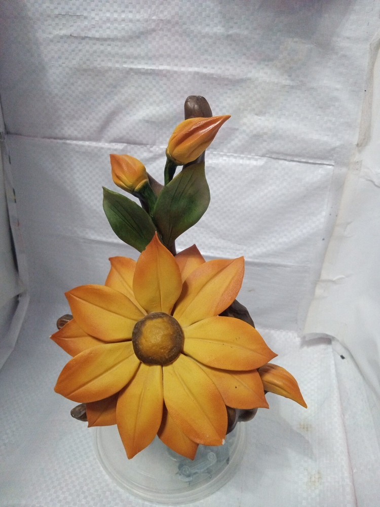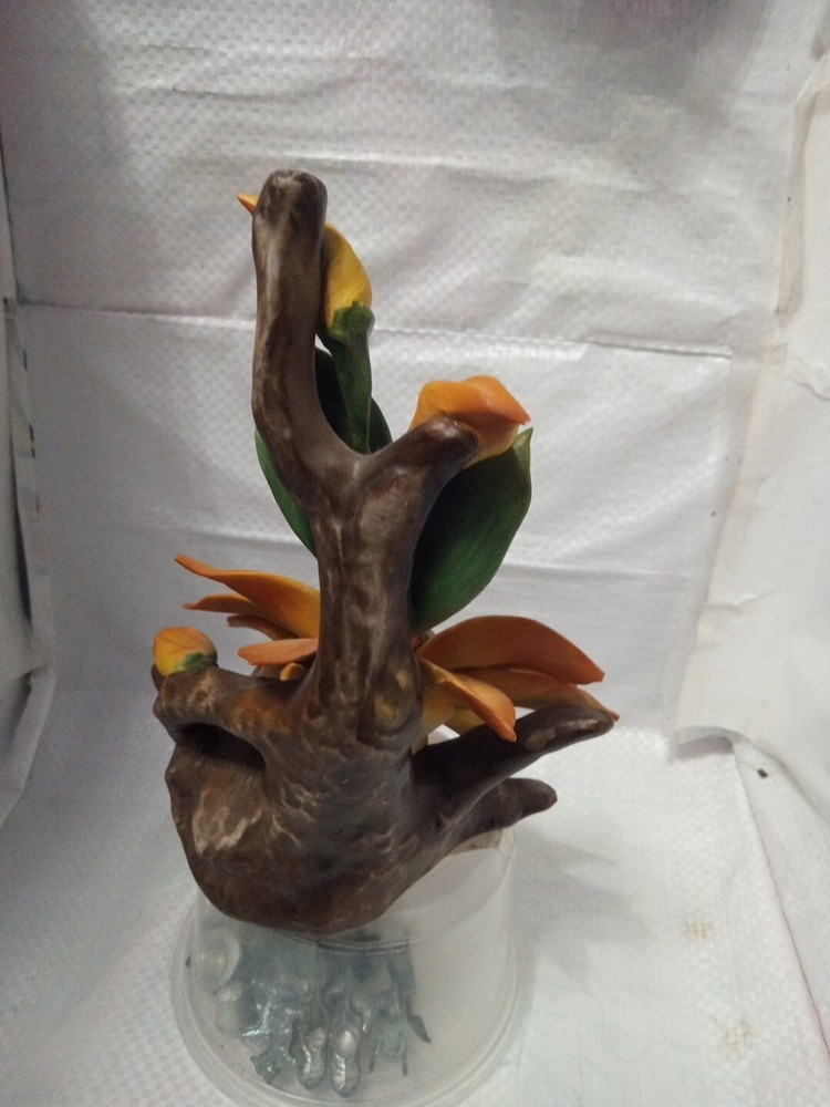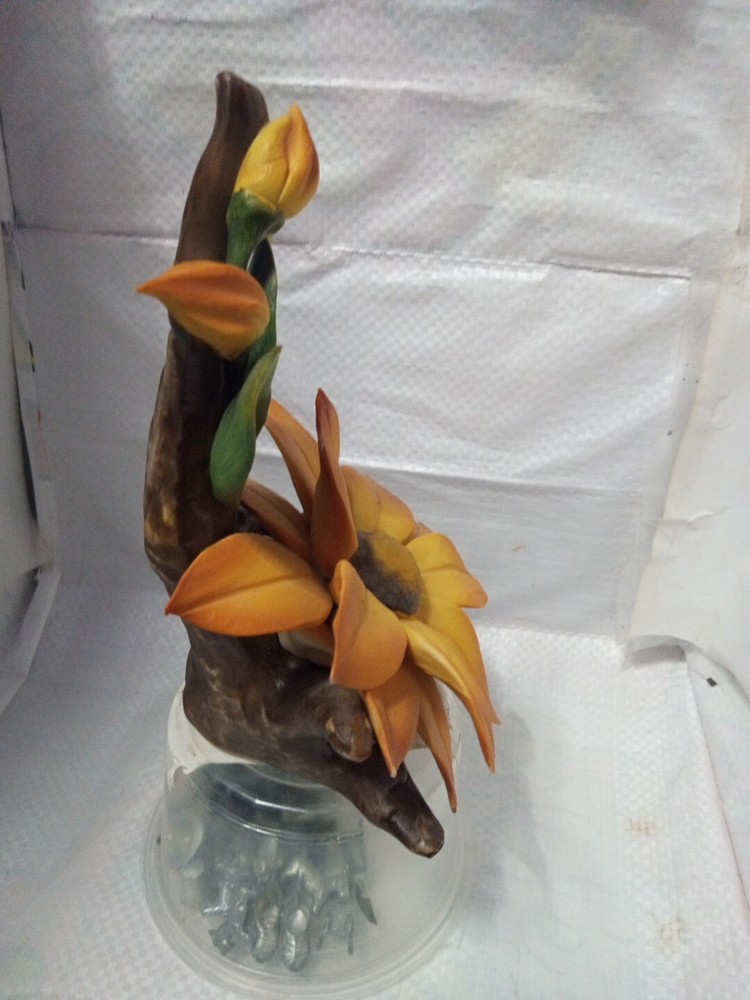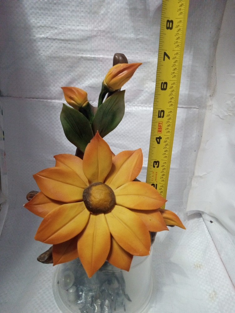 This beautiful sculpture is a stunning piece of art from the mid-century era. The intricate details of the Capodimonte brand's signature porcelain flowers in vibrant orange and black hues are sure to capture the eye of any collector. The piece exudes a classic Italian charm and elegance, making it a perfect addition to any decorative collection. The sculpture is crafted with the highest quality materials, ensuring its durability and longevity.