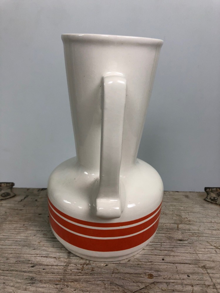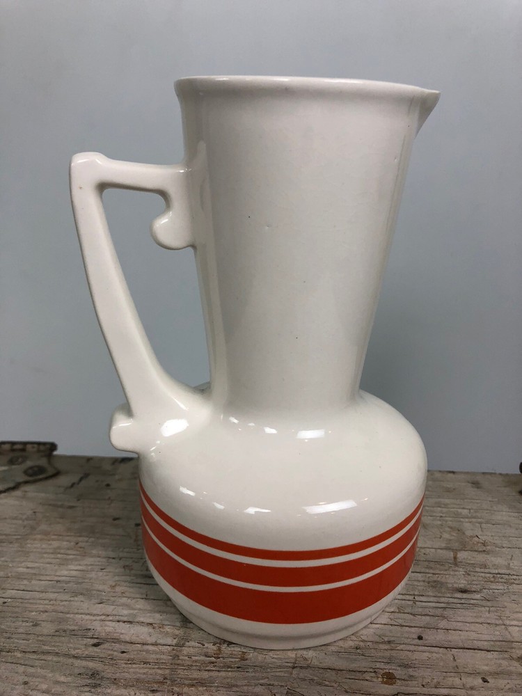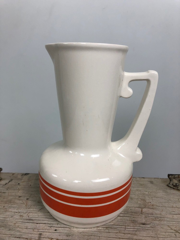 Mid Century Carafe Pitcher With Orange. Approximately 6.5” x 5”. Marked Japan on bottom. Beautiful mid century lines with orange striping....