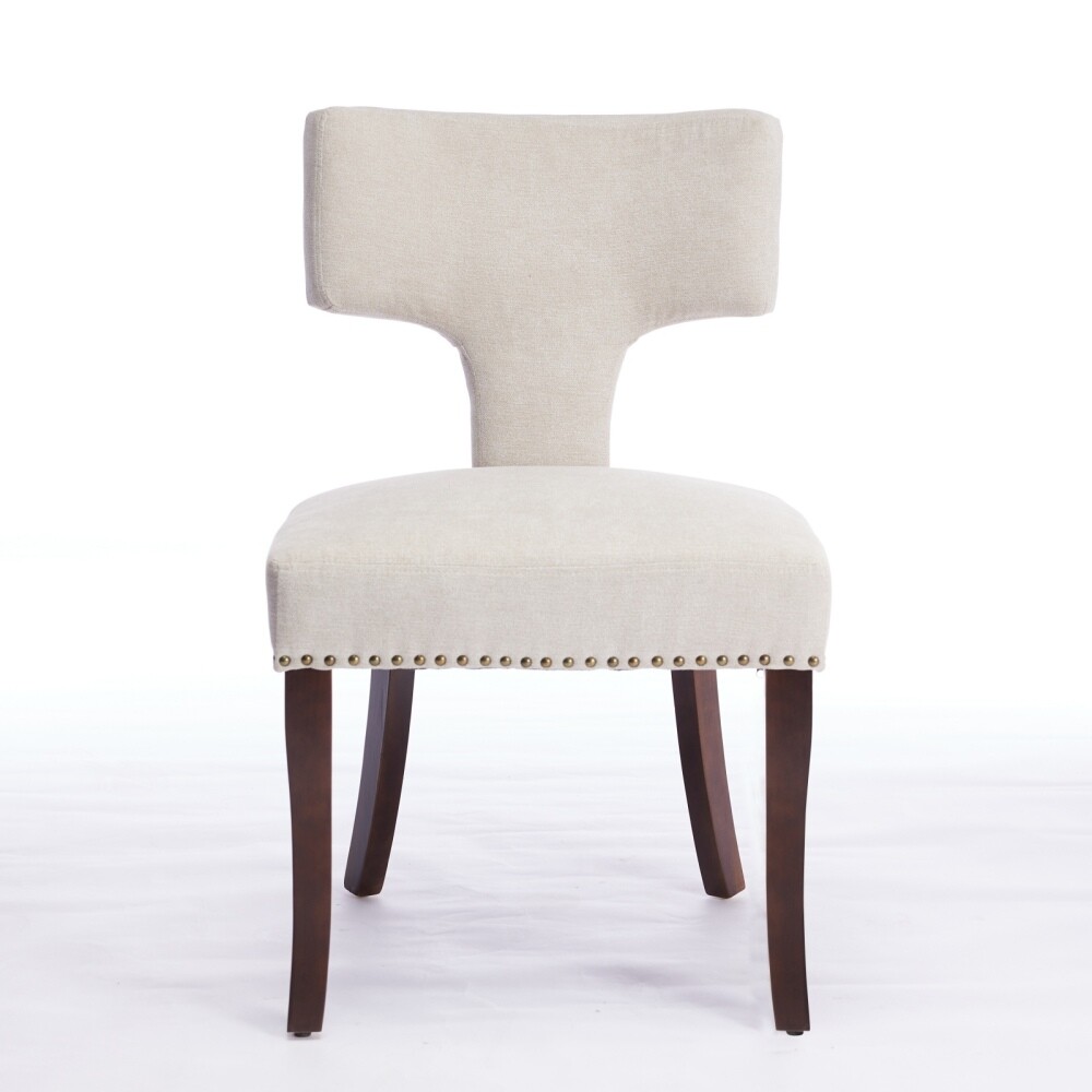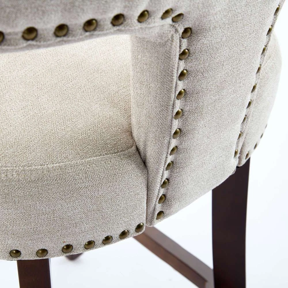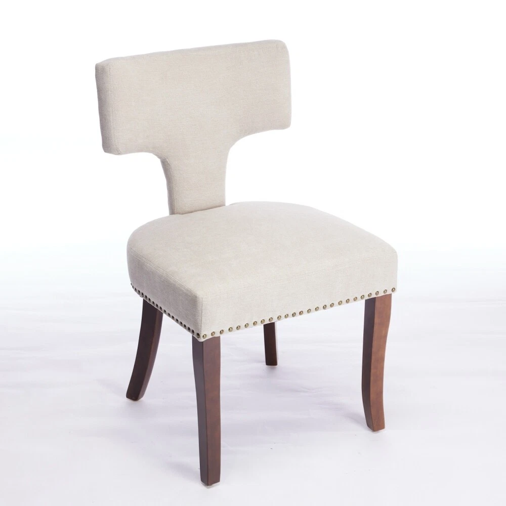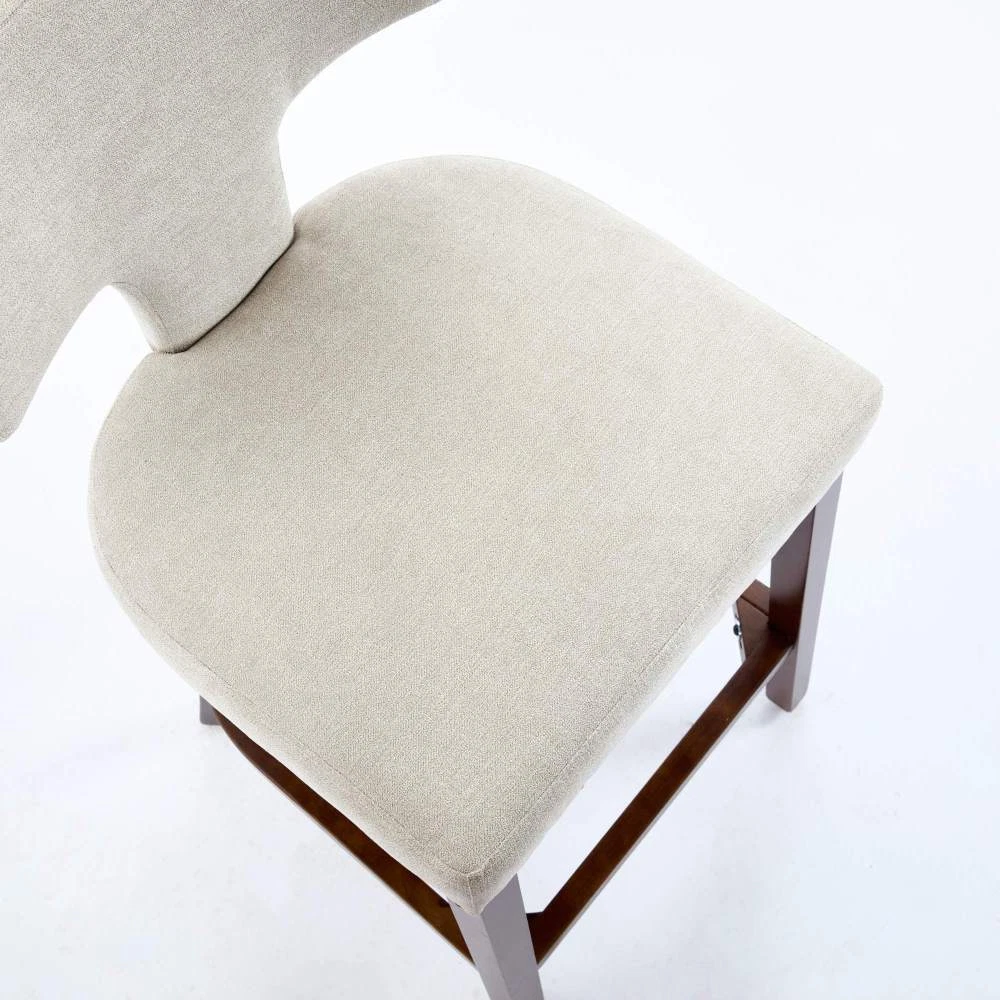 Armless design, splayed legs, foam cushion upholstery, and ergonomically curved backrest provide you comfortable seat feeling. The curved backrest is decorated with copper nails around it. The Cushion uses a high density foam and steel spring inner with high rebound structure, providing you with a comfortable seating experience. And brings a very warm atmosphere into dining room, sitting room and apartment. The chair's frame and legs are made of solid wood with enough security to hold up to 300 pounds. Please use the instructions and assembly tool inside the package to complete the assembly. Adjustable pegs on the legs allow you to adjust the height of the legs. This is a kind of solid wood structure bar chair with the simplest installation The curved backrest is decorated with copper nails The curved backrest is decorated with copper nails around it. The Cushion uses density foam and steel spring The Cushion uses a high density foam and steel spring inner with high rebound structure, providing you with a comfortable seating experience. And brings a very warm atmosphere into dining room, sitting room and apartment. The solid wood legs in walnut color are equipped w This is a kind of solid wood structure bar chair with the simplest installation.The solid wood legs in walnut color are equipped with adjustable balance studs.